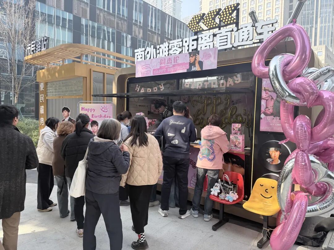现场最聚人气的,莫过于那辆满载惊喜的“潮趣应援BOX”主题车。大家有序排队,凭一张张周边商圈的消费小票,兑换独家设计的应援好礼。这里并非喧闹的演唱会现场,而是由黄浦区日行新社区服务中心主办、金外滩国际广场提供场地支持的“金外滩潮趣应援BOX”明星粉丝应援会活动。