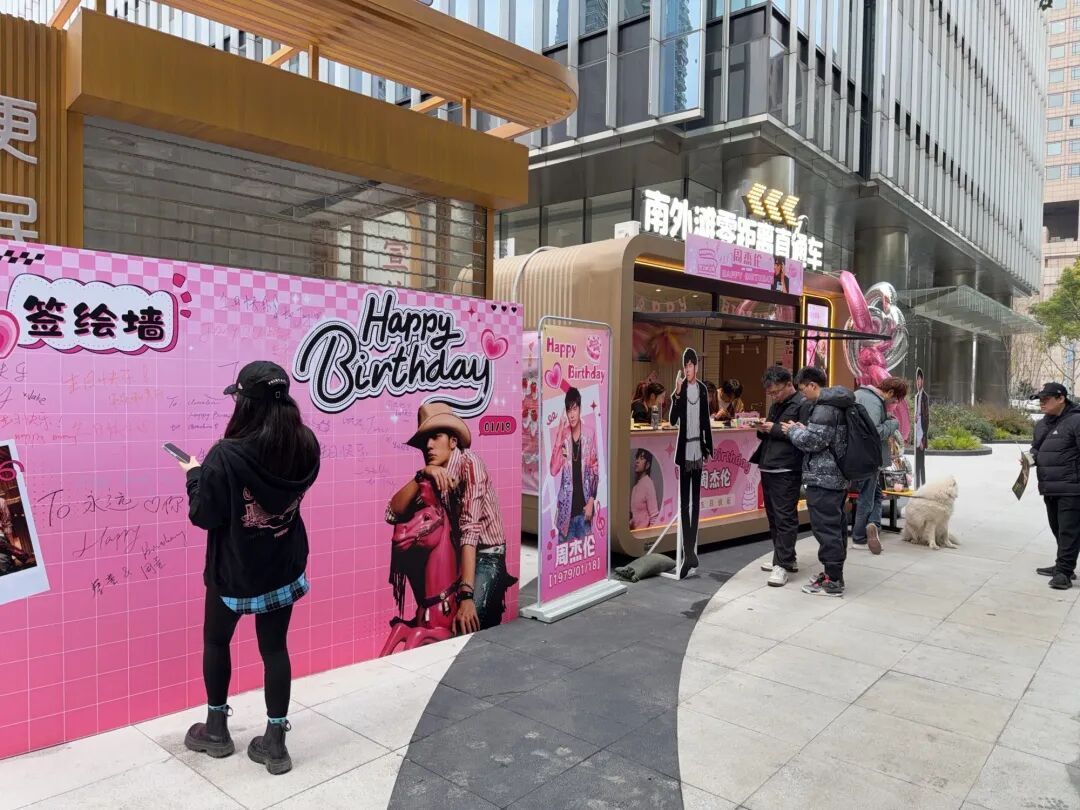 1月16日至1月18日期间,金外滩国际广场一改往日商务楼宇的宁静,洋溢着青春的欢声与斑斓的色彩。巨大的明星主题背景板前,年轻白领们手持定制应援物,在主题打卡点前展露灿烂笑容;一旁的互动游戏区,阵阵笑语不时传来。