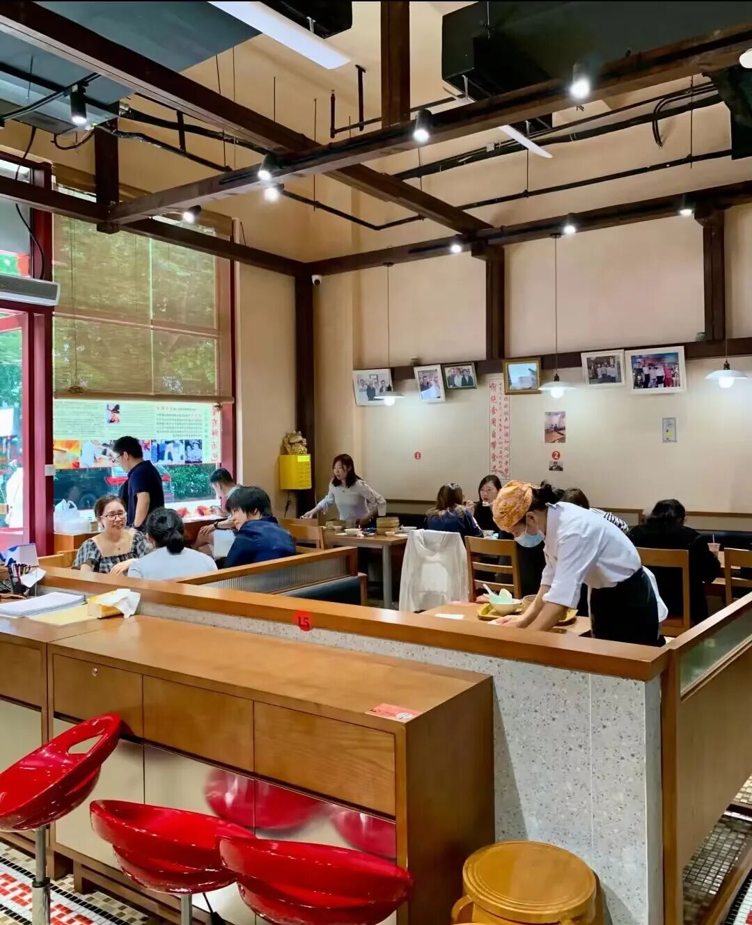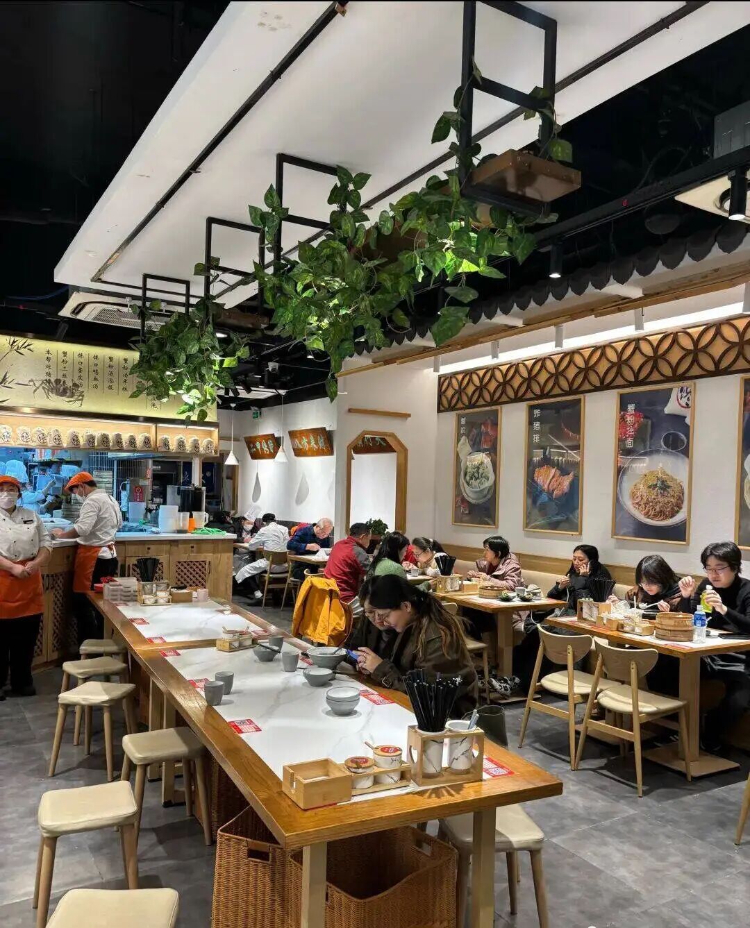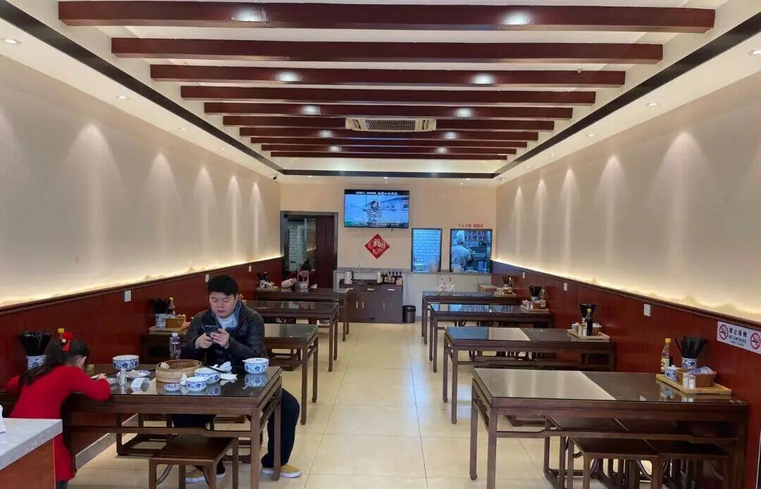 店面延续简约风格,暖黄灯光搭配木质桌椅,整体整洁雅致,用餐氛围安静舒适,告别传统小吃店的嘈杂。墙面挂满美食节目采访与明星到访照片,彰显品牌实力,角落“仅此一家”的提示牌,更显底气与独特。