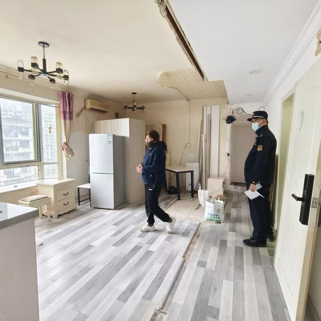 2025年11月14日下午,经协调,街道西片综合网格2名城管网格员与综合行政执法队物业类执法小组成员组成专项执法小组,会同西片综合网格联络员入户检查,现场确认房屋建筑面积约130平方米,客厅隔断已拆除,群租安全隐患已消除,每间卧室住1至2人,符合整改要求。