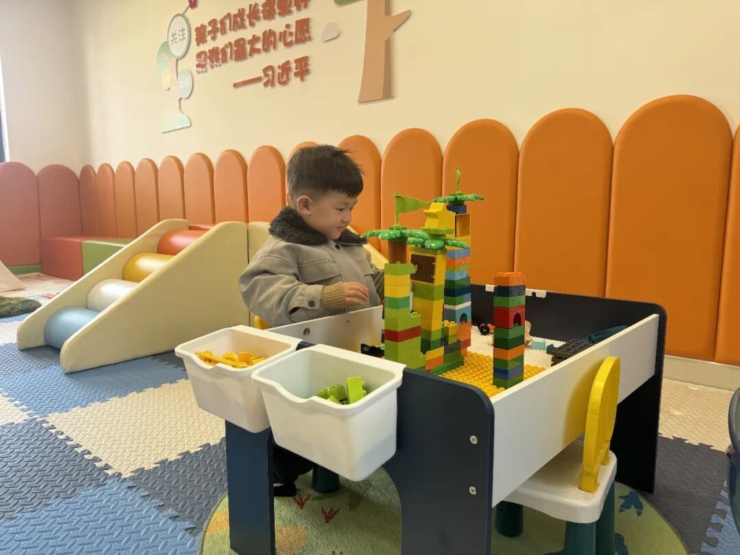 在张堰镇小雁子“宝宝屋”的音乐主题区,孩子们在家长陪伴下,敲击儿童编钟、木琴和手鼓等简易乐器,感受不同音色带来的变化。这里还设有多种动手动脑活动,让孩子们在玩乐中激发好奇心与创造力。不少家长表示,这样沉浸式的环境既帮助幼儿提前适应群体互动,也为他们将来融入幼儿园生活打下了社交基础。