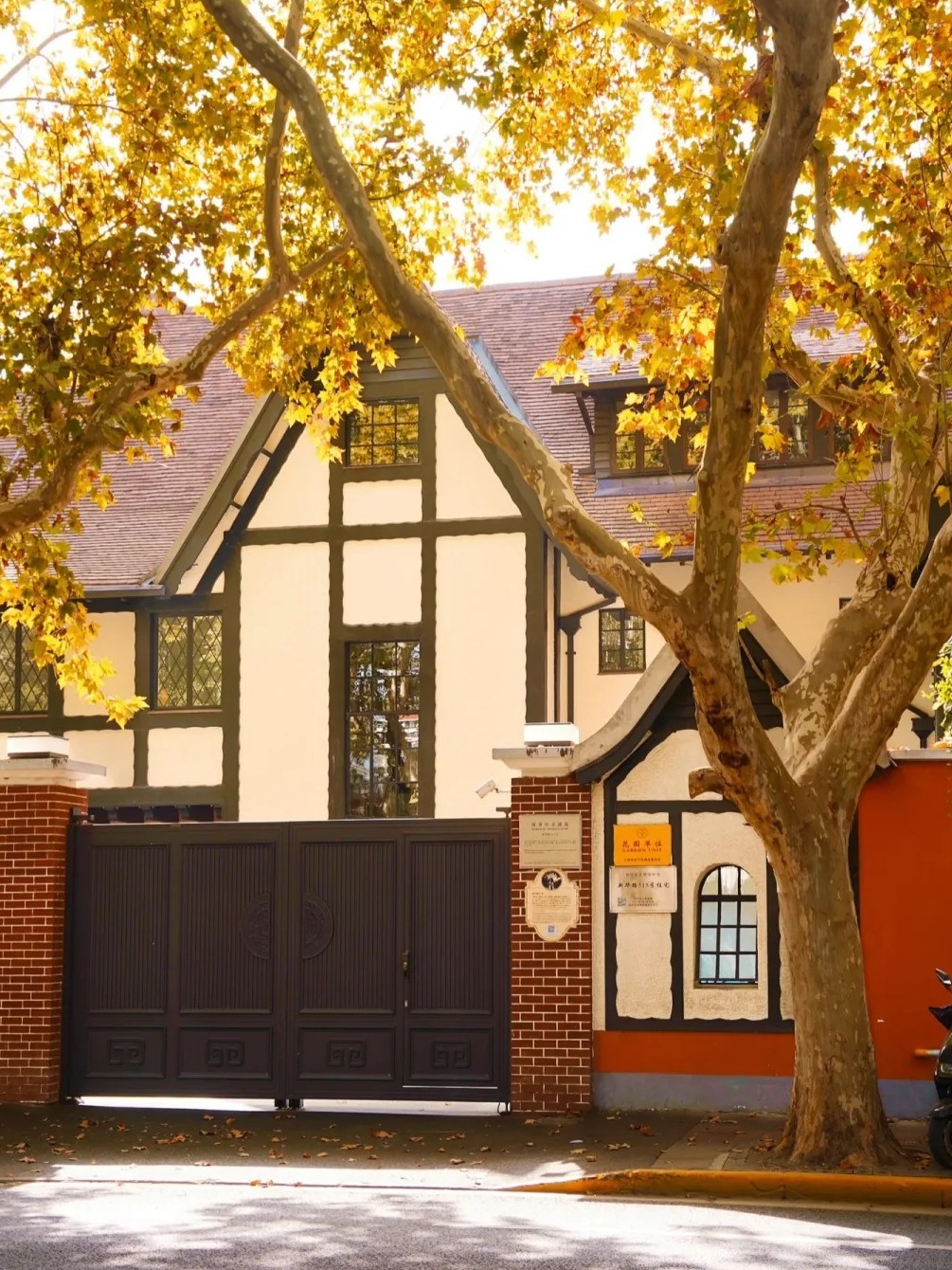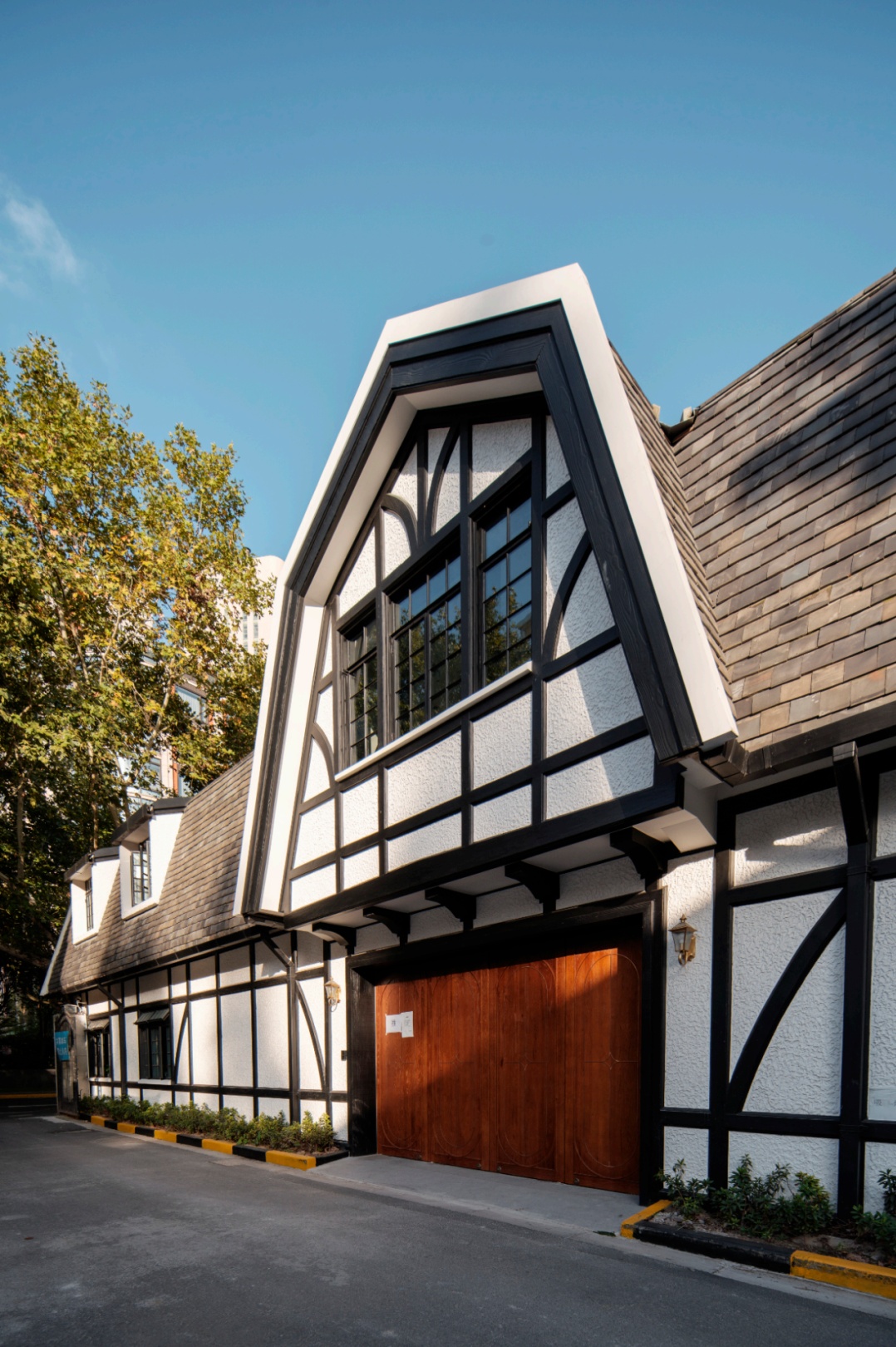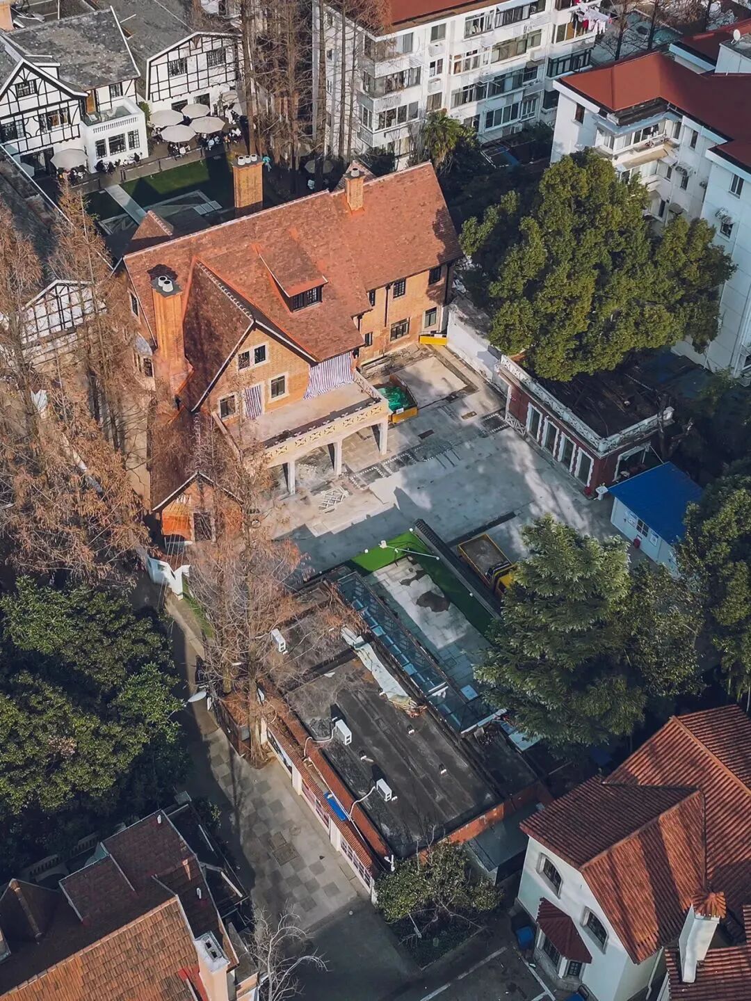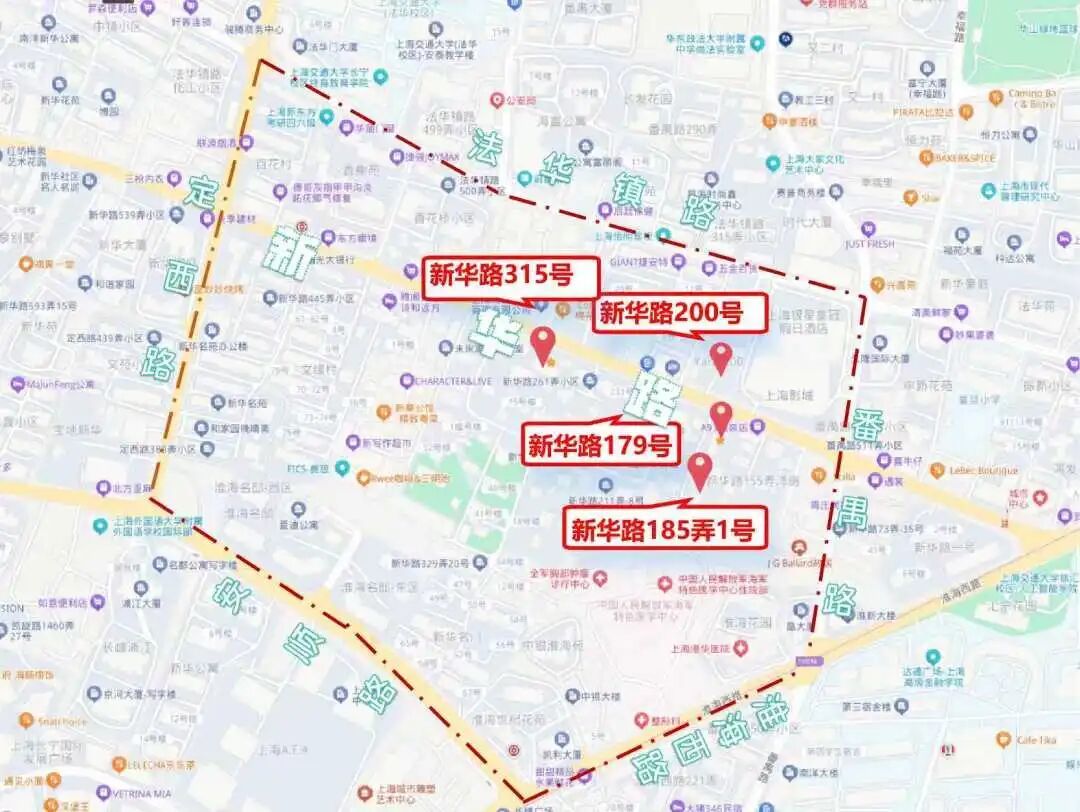 新华路原名安和寺路,始建于1925年,是上海64条永不拓宽的道路之一。历经察哈尔路、法华路等名称变更,于1965年正式定名新华路并沿用至今。该路东起淮海西路、西至凯旋路,曾是虹桥机场通往市中心的必经之路,故有“国宾道”之称。2003年,新华路及其周边区域被划定为上海市历史文化风貌区,因其低调典雅的风貌被誉为“上海的闺秀”。 新华路历史文化风貌区内沿新华路有成片低密度、以独立式为主的花园住宅,风格多样,具有容积率低,花园面积大,周边植被茂盛等特点。共有12处15幢建筑列入上海市优秀历史建筑的名单,另有一定数量的文物建筑及保留历史建筑,展现出丰富的历史和文化底蕴,是上海历史文化风貌的代表。而上海影城、民族乐团以及轻音乐团的驻足,更使新华路成为了艺术与历史的交融之地。 本期将带领大家游览新华路历史文化风貌区内4幢沿街的优秀历史建筑,在冬日的暖阳下,探寻哥伦比亚圈的往事、解锁邬达克的建筑密码。 新华路历史文化风貌区打卡点位 01 新华路315号 上海市优秀历史建筑|长宁区文物保护点 新华路315号俯瞰 新华路315号花园住宅建成于1949年,属于新华路老洋房的晚期实例,由王迈士建筑师事务所设计,建筑面积约为1700平方米,曾被用作上海市第一商业局疗养所。 新华路315号门口 作为典型的近代上海英国乡村式花园住宅,新华路315号建筑为假三层,砖木结构,屋顶采用的是双陡坡红瓦形制,出檐较大,错落有致、比例恰当;外墙立面上部是白色水泥拉毛墙面,下部则为清水红砖墙,显得清丽而简洁。这些建筑特征均为典型都铎复兴风格,具有独到的艺术价值。 新华路315号外立面 新华路315号内部 2023年,新华路315号进行了整体保护性修缮及室内装修。修缮后的花园住宅,拥有近2000平方米的花园绿地,幽静惬意,尽显海派雅致,如今作为办公使用。 新华路315号的草坪花园 02 新华路185弄1号 上海市优秀历史建筑|长宁区文物保护点 新华路185弄1号俯瞰 新华路185弄1号,建造于1930年,原为侨民住宅,1949年后成为单位用房,现作为安徽省驻沪办办公地点使用。 新华路185弄1号为典型的英国乡村别墅风格,且带有哥特建筑特征,假三层砖木结构,双陡坡机平瓦屋面,屋面有棚屋形老虎窗,白铁踏步泛水;外墙面红砖清水墙,窗框周边有斩假石窗套装饰;山墙有凸窗,拱券窗楣,南立面有拱券门廊;伸出山墙屋面的清水红砖烟囱顶部有精致的齿形装饰,这些精美的细部设计使得建筑有了突出的个性。 新华路185弄1号外立面 2024年,新华路185弄1号进行了保护性修缮,重现旧日风采。而从新华路185弄弄堂口进去走到底,则是安徽省驻沪办招待所,以正宗的安徽美食闻名,吸引着食客们的到来,在一品美食的同时,还能尽享静谧弄堂中的历史氛围与雅致环境。 03 新华路179号 上海市优秀历史建筑|长宁区文物保护点 新华路179号现状 新华路179号建于1925年,建成之初为哥伦比亚圈内侨民花园住宅,曾作为新华路警署使用。 新华路179号外立面 这座花园洋房建筑面积约为680平方米,主体为典型的德国式民居风格,假三层砖木结构,机制红平瓦双坡屋面,檐口处设有折坡,棚屋型老虎窗,白色拉毛墙面,衬着山墙上黑色的木框架,整体造型简洁素雅。北部两端及西立面“裙房”,均为后期相近风格的加建。 如今的新华路179号 2008年,新华路179号成为外滩花园酒店新华路分店。2020年,整体保护性修缮作为一尺花园咖啡店及精品酒店重新开业,为街区增添了独特的海派风情。 04 新华路200号 上海市优秀历史建筑|长宁区文物保护点
