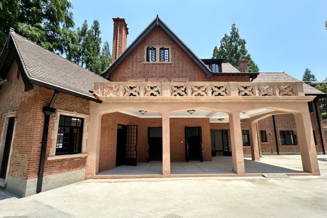 新华路200号现状 新华路200号是新华路历史文化风貌区内唯一一栋中国固有式建筑风格的花园住宅,始建于1934年,由著名建筑师甘少明设计,安泰营造厂承建。该建筑于1948年经历改建,为三层钢筋混凝土结构,采用木楼面与混凝土屋面,建筑风格兼具实用与典雅。历史上,此处曾作为《汉语大辞典》编纂工作的办公总部,具有重要的文化记忆。 新华路200号外廊及屋面戗角 新华路200号建筑立面呈中轴对称,屋面采用中国传统大屋顶,琉璃瓦屋面,四只戗角翘起,在建筑整体的外观形式和装饰细节上模仿了中国传统建筑样式。房屋平面近似呈“凸”字形,平面布局兼具中西特色,各房间通过室内楼梯或外廊相连,整体布局错落有致。房屋南主入口台阶两侧各有一尊西洋写实风格的石制卧狮。外廊柱与梁面仿彩画图案、仿雀替装饰、翘起的戗角相配,显得坚固宏伟、庄重素雅。 新华路200号内部 2023年,新华路200号进行了整体保护性修缮,如今作为上海电影艺术中心,成为电影首映、新品首发、时尚首秀的新文化地标,为“电影之城”上海注入独特的历史魅力。 上海电影艺术中心 结语 步入新华路历史文化风貌区,仿佛打开了一部铺陈于街区的建筑百科全书。这里荟萃了十余种风格的花园洋房,既有盛家花园的英式优雅,也见证了《汉语大词典》编纂地的历史文脉。每一栋建筑,都是一段可阅读、可聆听的故事,在保护与更新中延续着生长的文化生命。这个冬日,不妨来此漫步,亲身感受这片街区永不褪色的空间诗意与海派魅力。 *本文图片来源自上海长宁、上海长宁文旅、人文新华、影日深走马、上海交通大学建筑遗产保护中心、一尺花园、城的更等微信公众号。