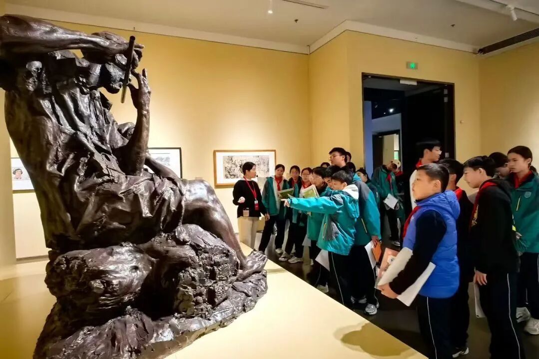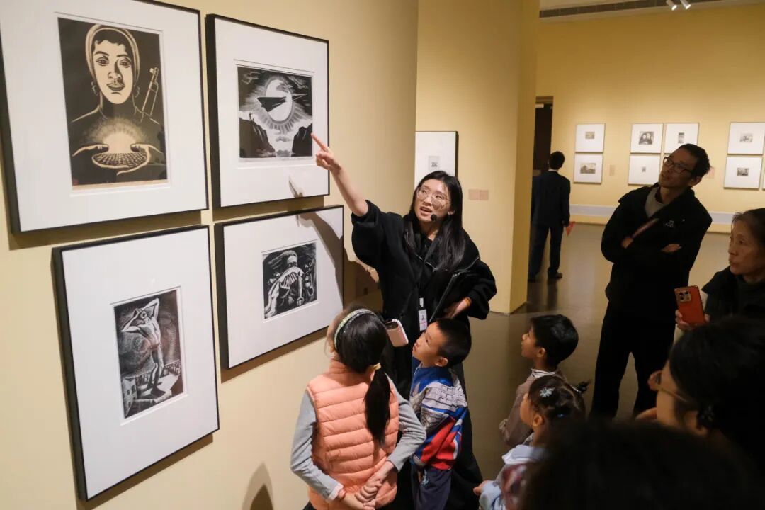 上海美术馆的品牌项目“美术馆现场教学课”在展览期间开展了近20场次。针对中小学生,推出了教学课课题“古树新花:传统国画的百年守护与变革之路”“‘匕首投枪——新兴木刻运动及漫画’观展探究”等,引导学生在观看作品中感受中国美术变革的时代脉搏;针对大学生,推出了“美术馆里的‘文化艺术思政课’:从‘岭南画派’到‘木刻刀锋’”等课题,实现美育与思政教育的结合。