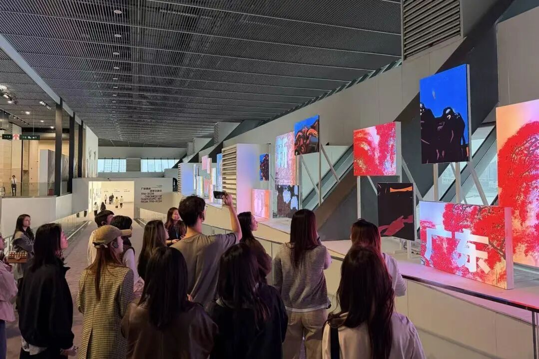 开展以来,两地中小学、高校师生都在探索展览的各种“打开方式”。亲临现场观展自然是最好的体验,但在展厅之外,两地教育团队也通过展册、图像、视频资料的投放,推动了更多师生走进“广东美术百年”。