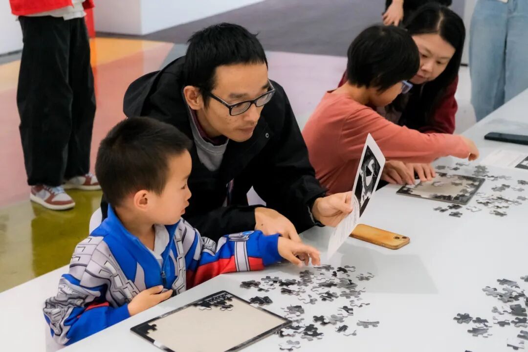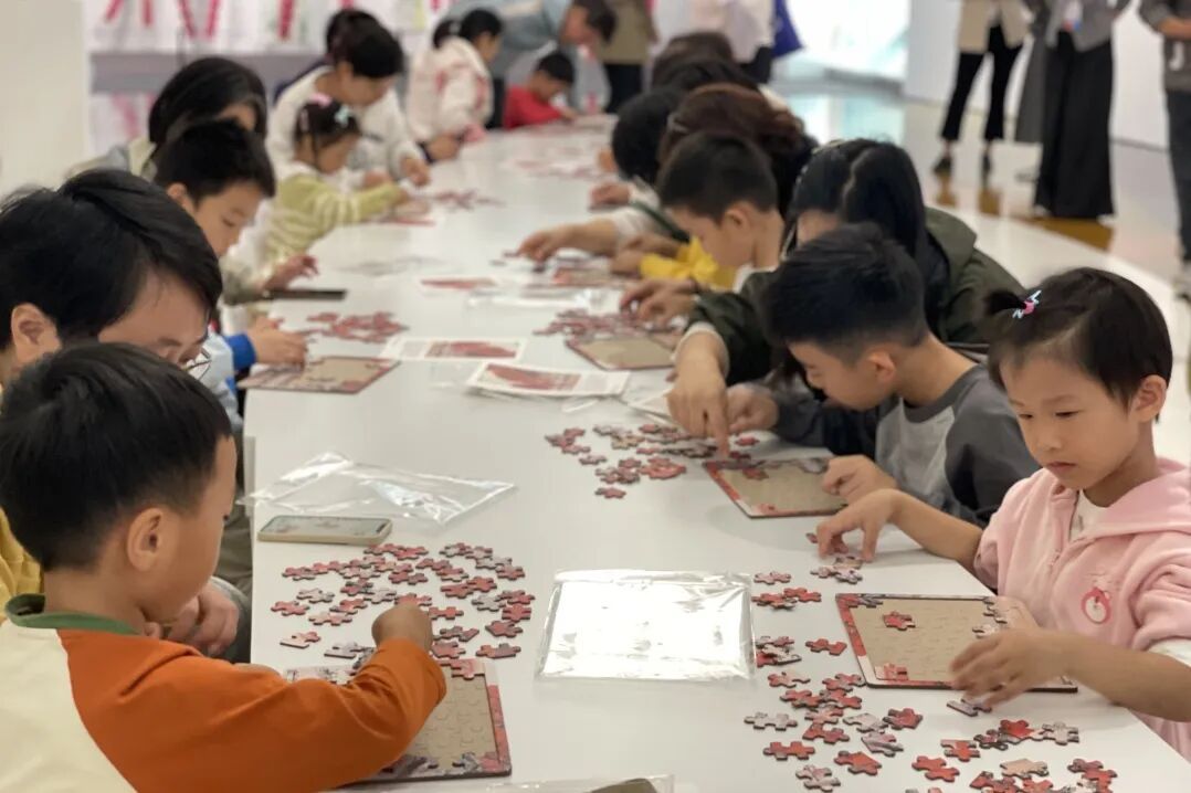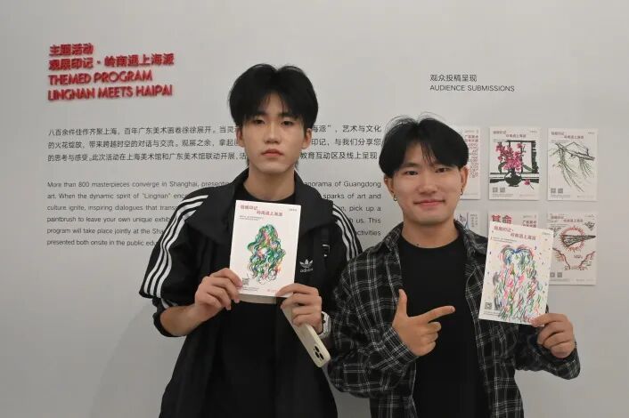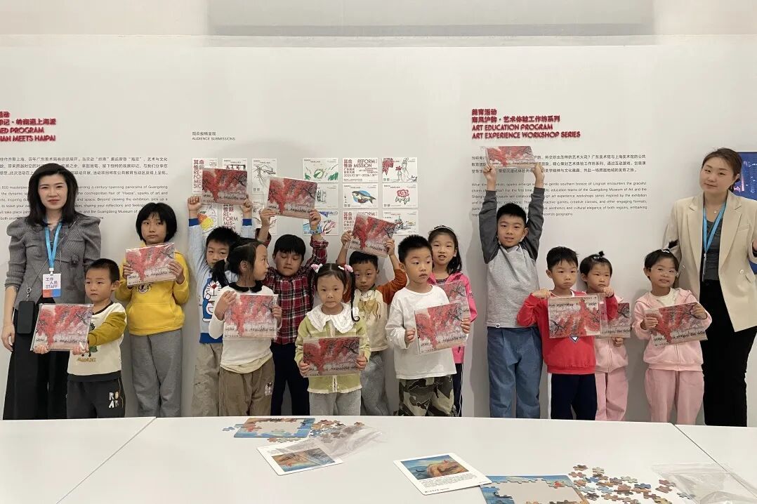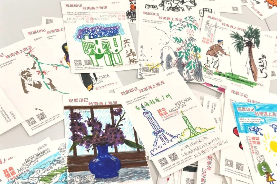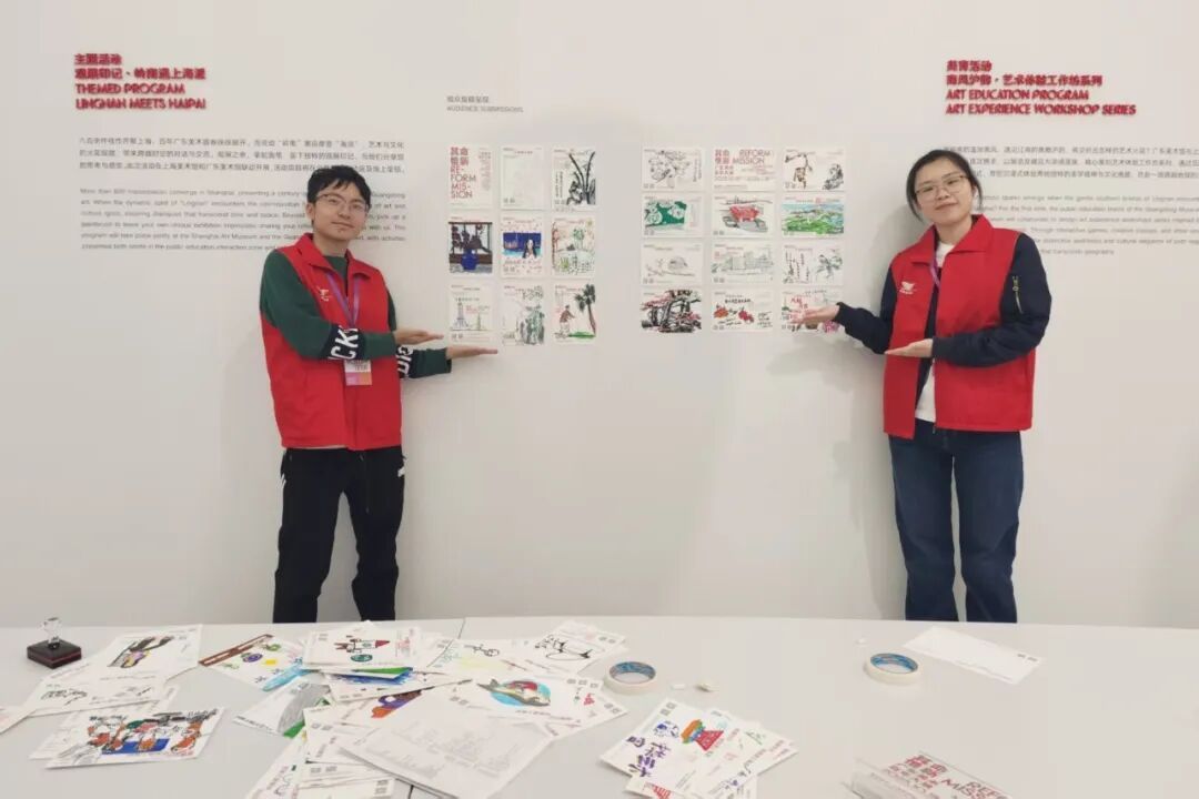 在展览的公共教育互动区,常态化的投稿活动持续发生,展览限定印章留下美好观展印记,定期开展的“拼图识画”游戏深受艺术达人和青少年儿童的喜爱……开展至今,公共教育互动空间已接待观众约21万人次,有约1.5万人次参与了主题创作,过千人留下了独一无二的投稿作品。观众在观展之后,可以到这里绘画或书写,留下自己的想法和感受;也可以阅读别人的投稿,实现跨越时空的交流。许多人认真地描绘了自己最喜爱的作品,也有不少人结合粤沪两地的文化元素进行创作。互动交流让文化变得生动具体;艺术游戏让观看充满趣味。正如观众所言:“这里像一个艺术的自由天地。”