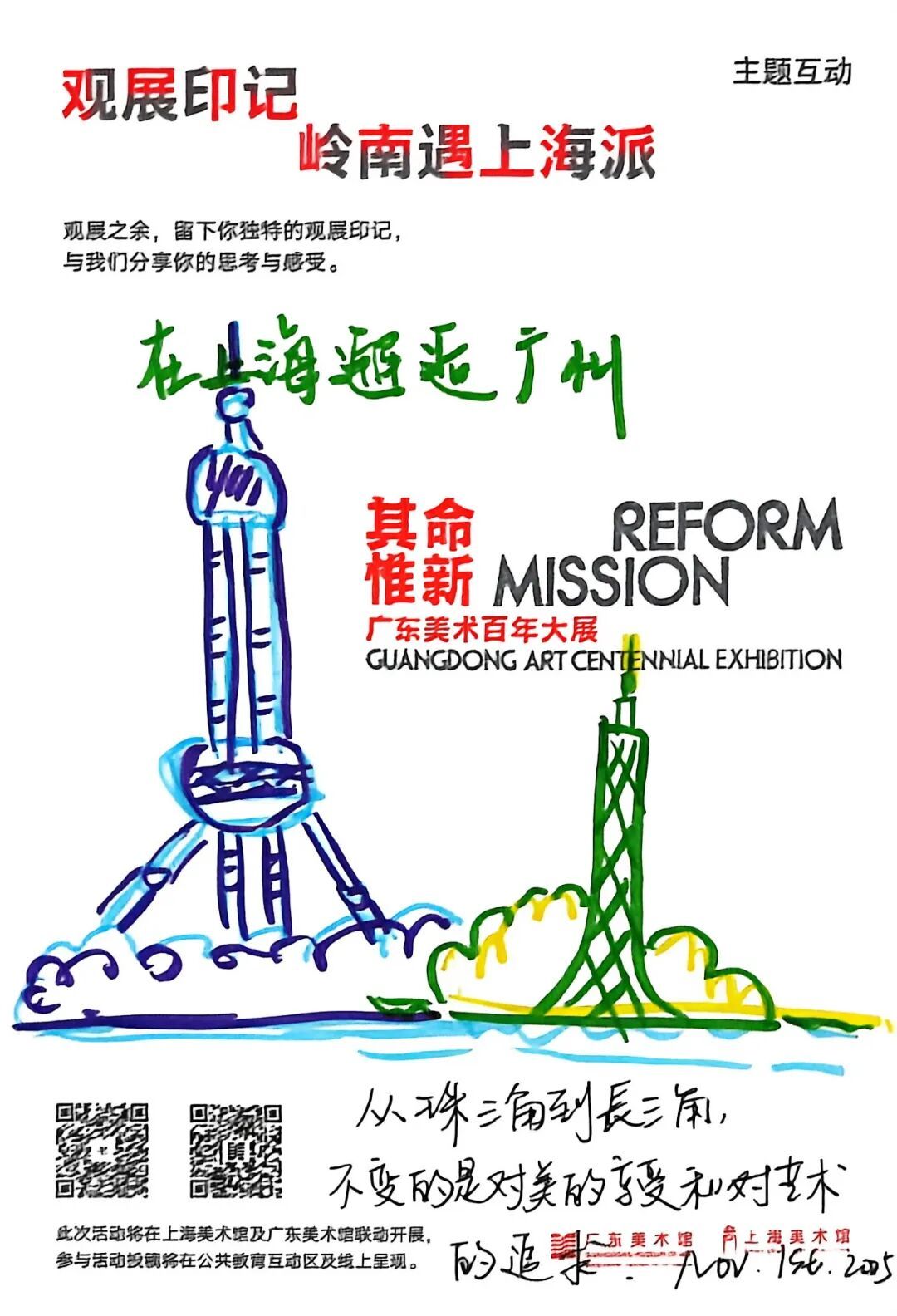 除了在展览地上海开展丰富多样的教育活动,展览资源亦在广东地区得到激活,实现了展览跨地域互动。在广州,广东美术馆公共教育团队通过讲座和将上海观众的投稿带进社区、学校展示交流的方式,促成两地市民群众共同探讨与广东美术历史和优秀地域文化相关的课题。