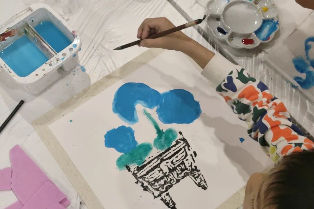 结合展览开展的艺术体验工作坊系列让观众深度感受艺术的魅力与创作的乐趣。形式多样的艺术体验活动至今已开展9场,有450多名观众参与活动。观众在体验岭南画派“撞水撞粉”技法的过程中描绘中国画创新与变革的历史脉络;在作品的鉴赏与拓印、绘画的体验中,感受不同艺术类型的特点,以及创作上的互通之处。