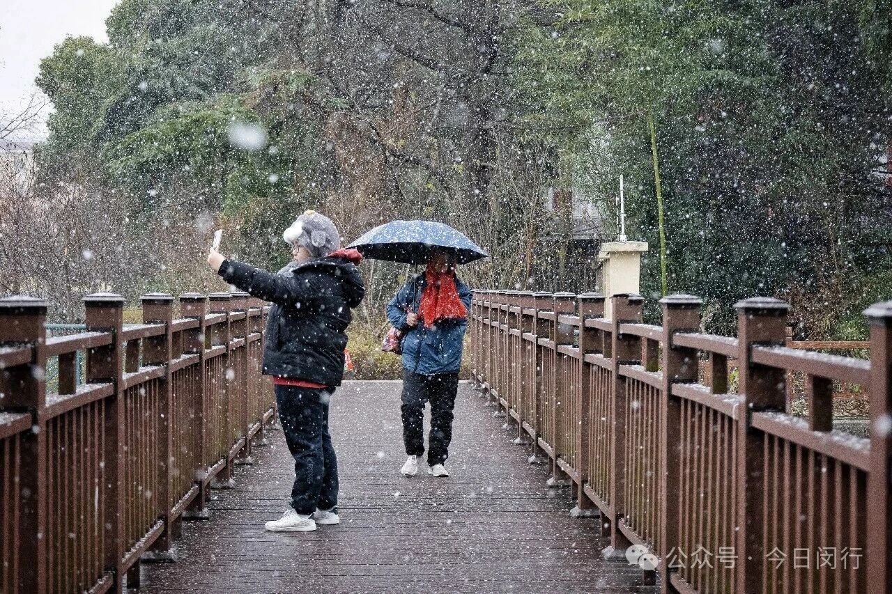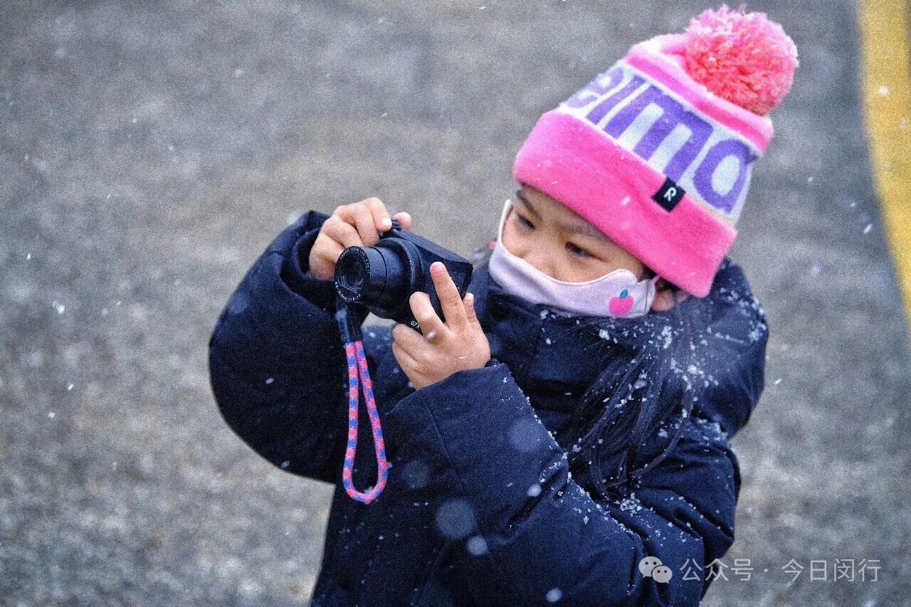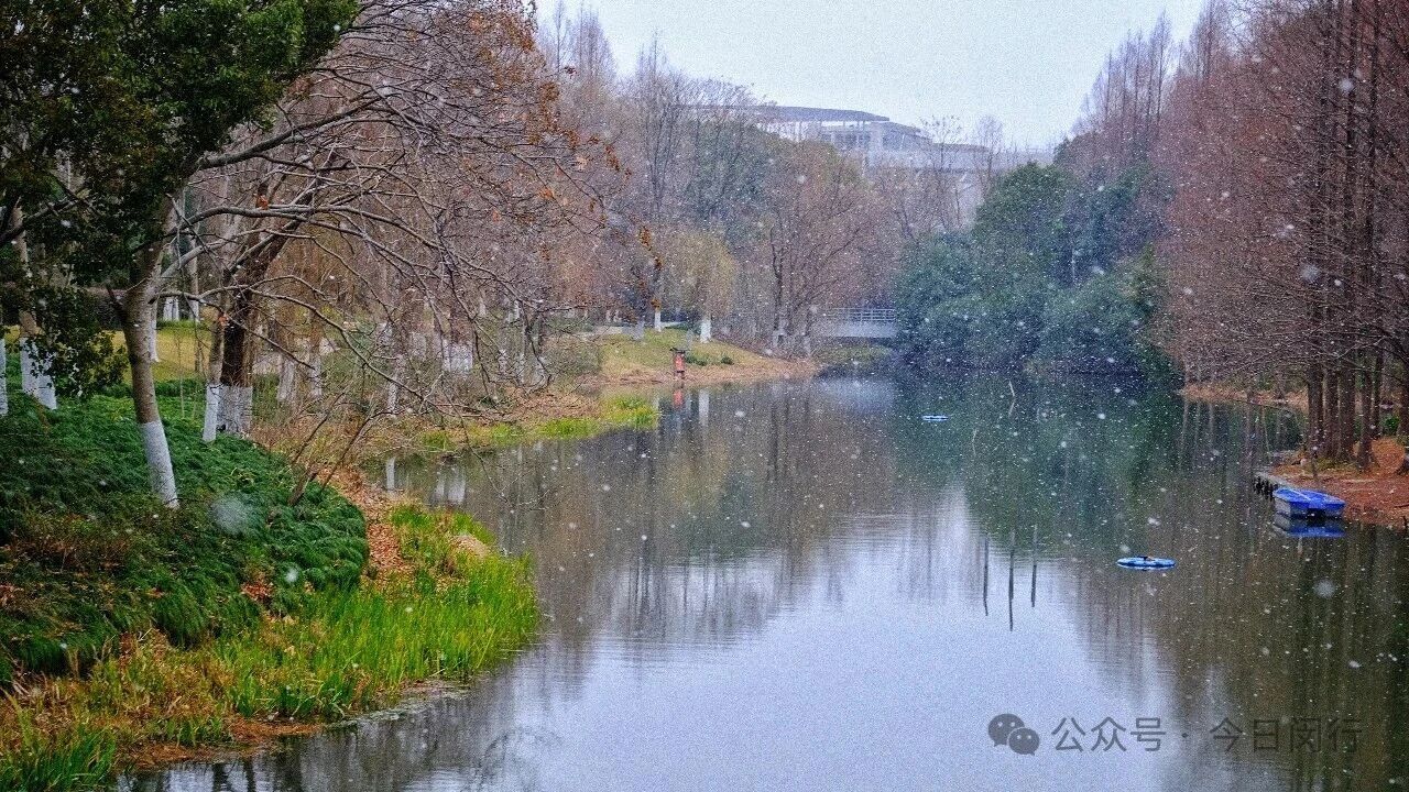闵行今晨的雪,像棉花糖、像棉絮,又像鹅毛,不紧不慢地覆盖下来,看着窗外这个突然变得童话般的世界,闵行人的心情也一下子被哄好了。