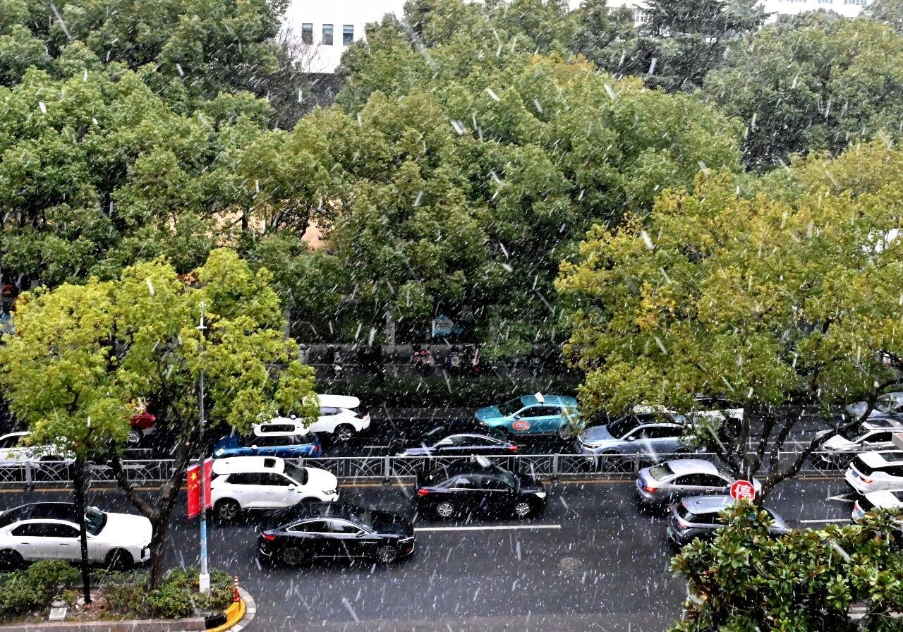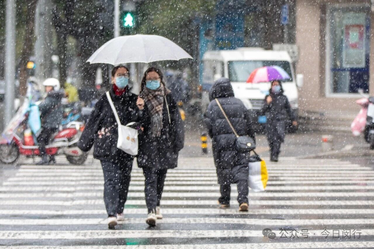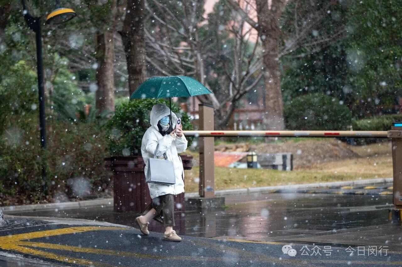 闵行今晨的雪,像棉花糖、像棉絮,又像鹅毛,不紧不慢地覆盖下来,看着窗外这个突然变得童话般的世界,闵行人的心情也一下子被哄好了。