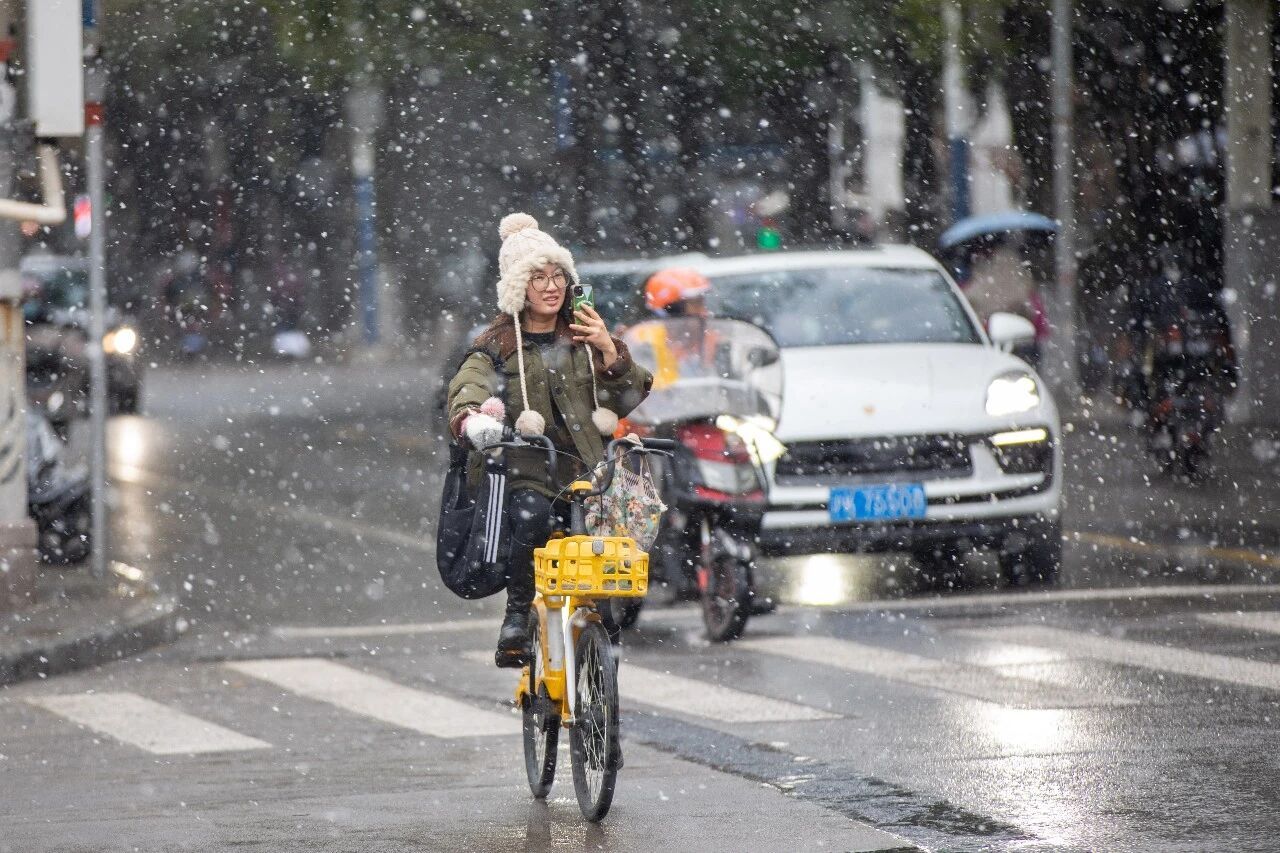 据了解,上午随着雨雪带逐渐向东南方向移动,雪花一度洋洋洒洒,降落过程中部分融化,也出现了小雨夹雪、小冰粒、霰等混合相态。今天下午雨雪趋于减弱,范围减小,转为阴到多云,局部有小雪或小雨夹雪。