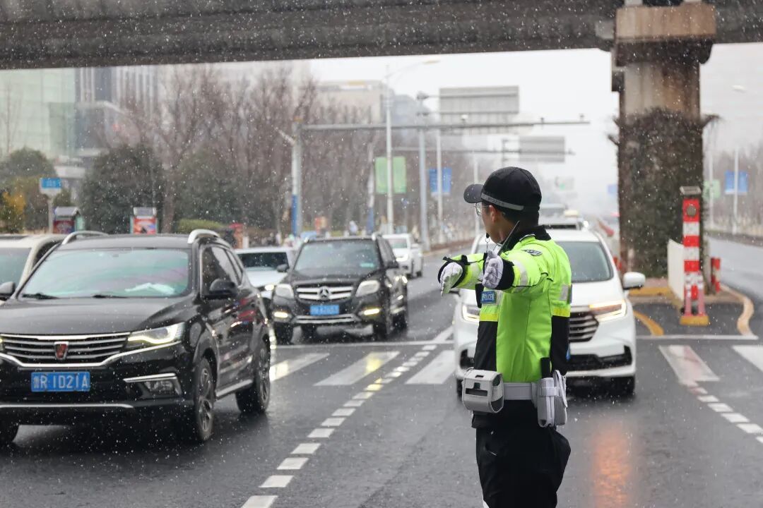 1月20日上午十点,雪花漫天飞舞,可见大片大片的飘落场景。闵行闻雪而动,筑牢市民出行安全防线。