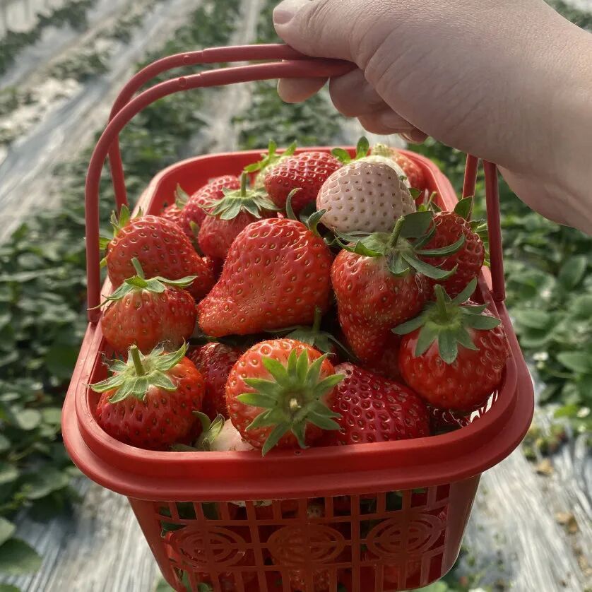 - 亲手摘下清香扑鼻的草莓,红似火,白如雪