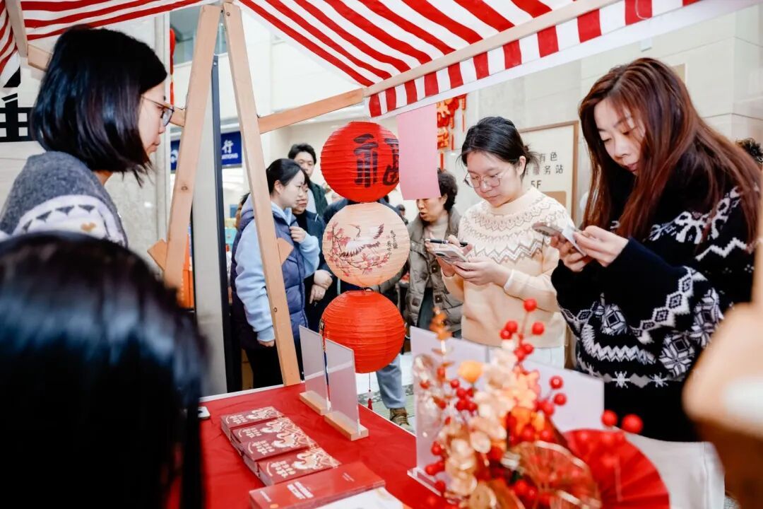 “刚从工位下来就闻到香味,品尝到了群团提供的咖啡与点心。”在职工食堂,职工们边吃边和同事讨论着刚才逛服务集市的收获。相较于茶歇区的惬意,大堂中央的五大服务摊位更显热闹。区总工会“双服务”站前,一位年轻职工正用手机扫码入会,区总工会工作人员介绍,“为了让职工就近就便加入工会组织,现场专门提供扫码入会服务,同时结合楼宇内大宗商品贸易企业职工的作息特点,精心挑选了公益乐学、工会夜校等课程送进楼宇,课程涵盖了运动类、技能类、讲座类等,丰富职工的休息体验和业余文化生活。”工作人员一边指导扫码,一边细致讲解课程报名流程。许多职工通过扫码入会、活动打卡,领取到了内含多张生活服务体验券的“有生有色新春福袋”。
