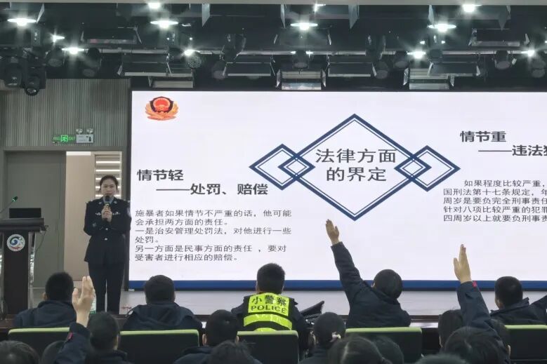 对于年龄更大的学生群体,志愿者则侧重法治思维启蒙和观念引导。在防校园暴力专题课程中,民警从法律角度切入,借助真实案例,清晰剖析校园霸凌与暴力行为的法律性质和后果。课程不仅说明“不能做什么”,更阐释“为什么不能”以及“要承担什么责任”,帮助青少年树立法律意识与责任观念,在成长关键期播下遵纪守法的种子。