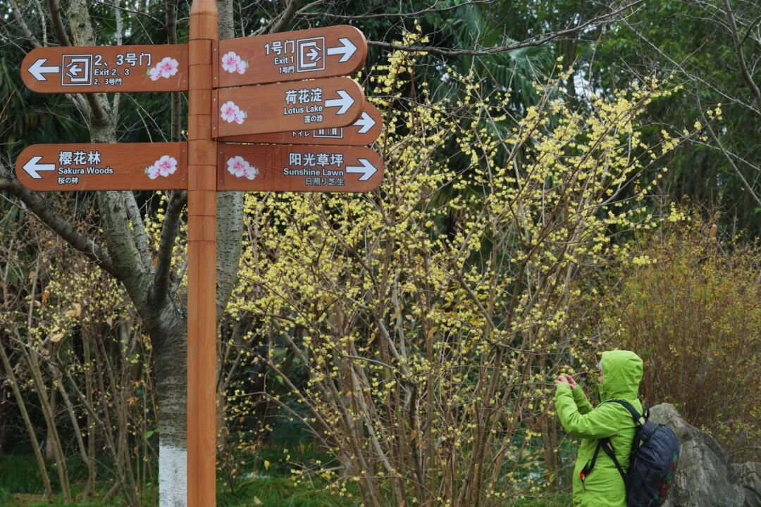 顾村公园里的蜡梅却悄然怒放