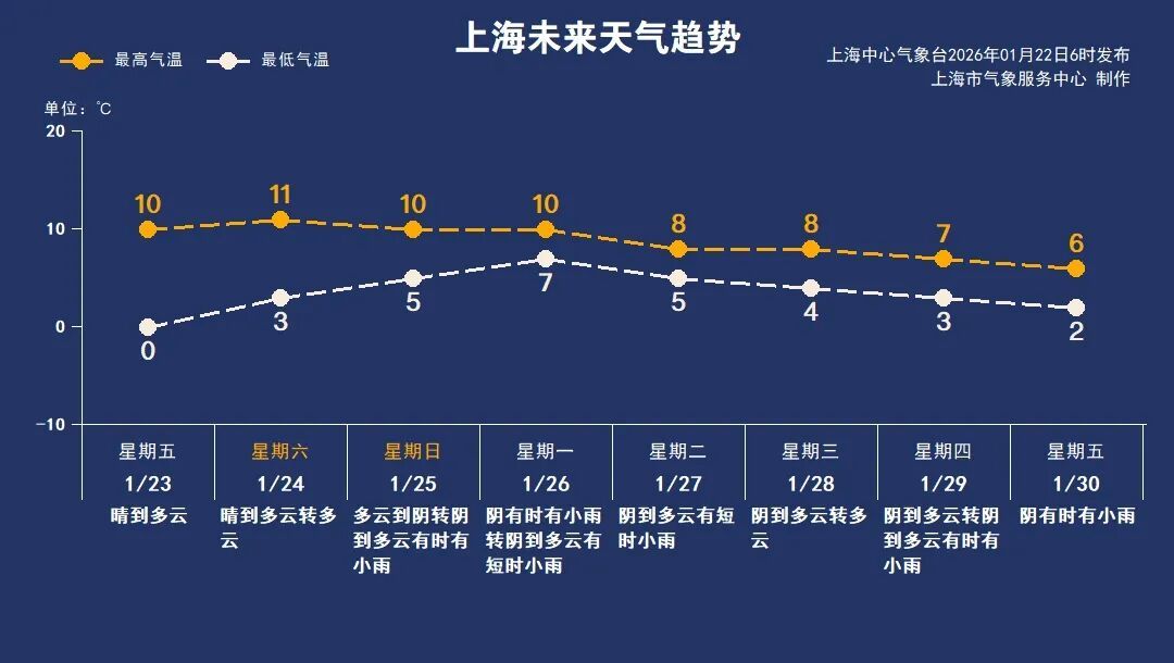 1月25日(周日):多云到阴转阴到多云有时有小雨,5~10℃