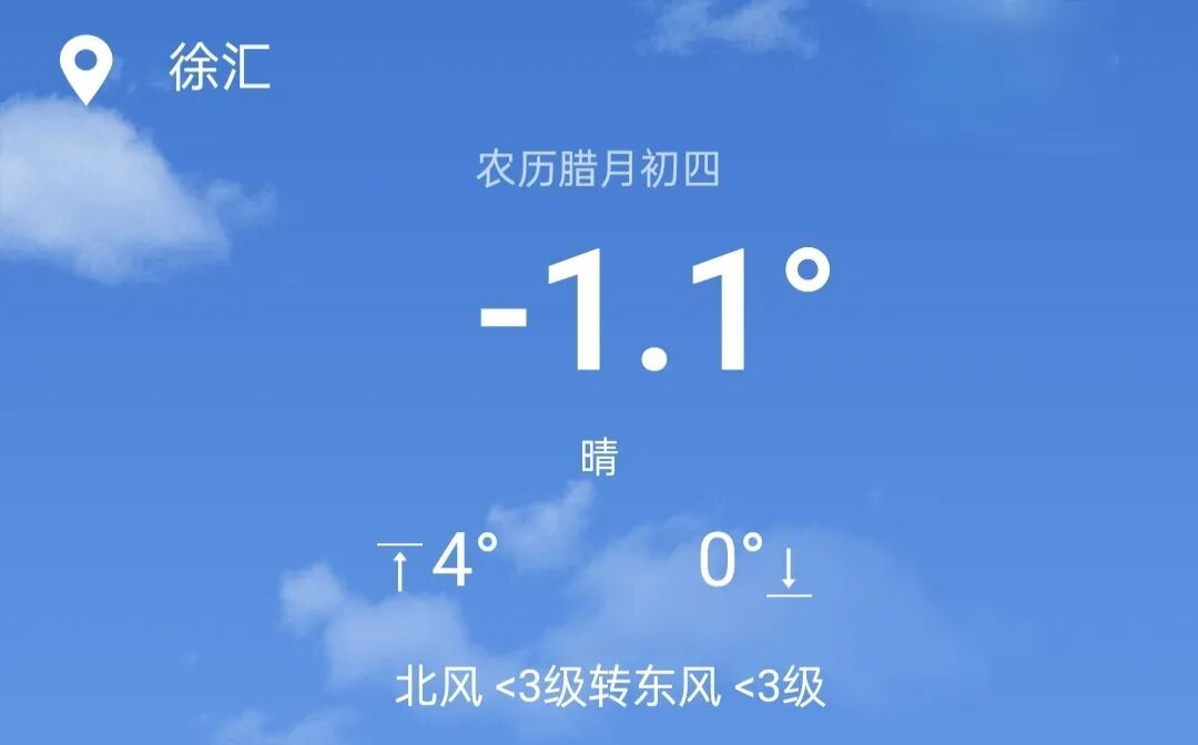 上班(6—9时):多云,-1℃~1℃;