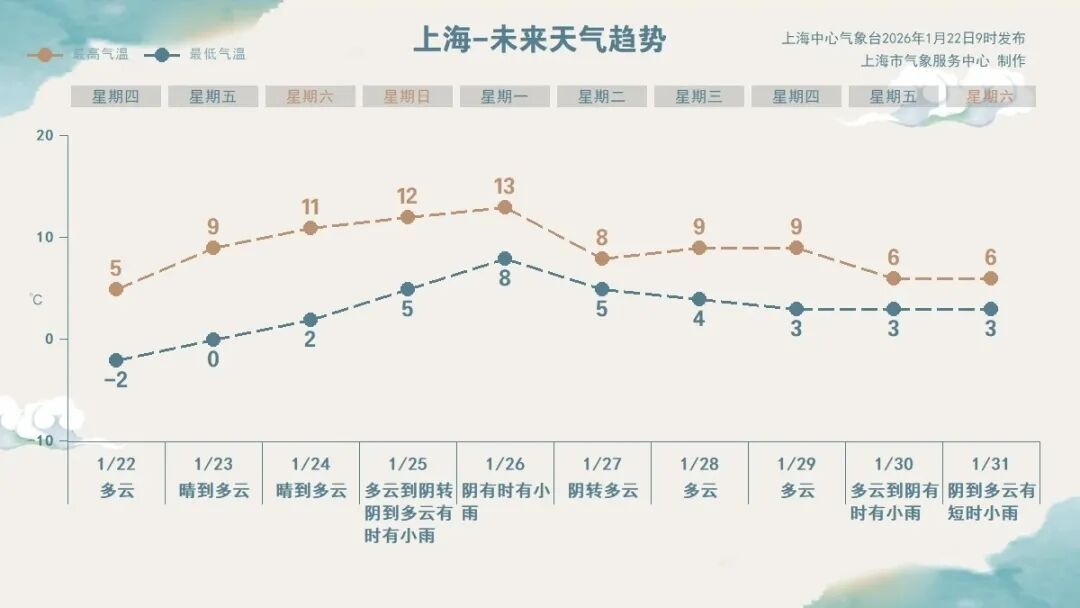 上海中心气象台预计,本周六申城继续回暖的进程,最高气温将站上两位数,届时天气晴好,适宜洗晒。周日白天本市云系开始增多,夜间转雨,下周一雨水相伴。下周二起,气温小幅下滑至10℃以下,下周六前后还将迎来一次降水天气过程,届时体感转为湿冷。