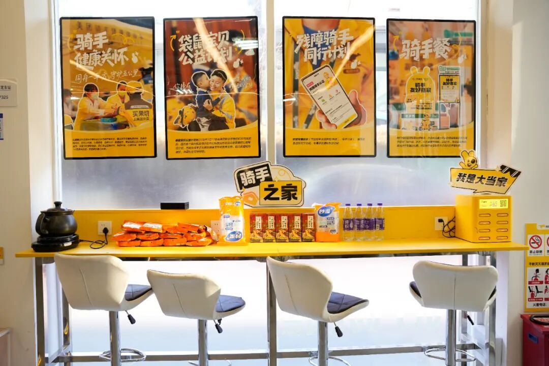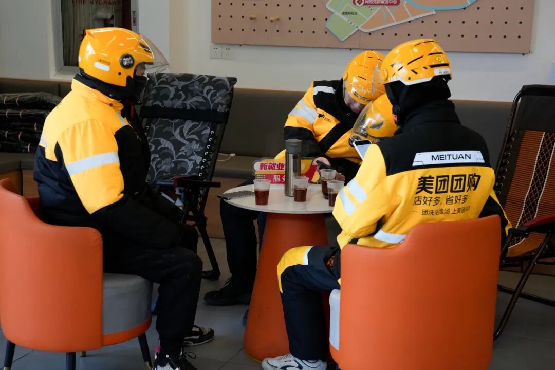 在低温严寒天气下奔波配送,对于外卖小哥们来说无疑是一大考验。为此,位于塔城路上的“骑手之家”转为全天开放的“温暖驿站”,为广大骑手提供24小时空调、热饮、暖贴及护膝等御寒物资,全力撑起小哥们的“温暖后台”。