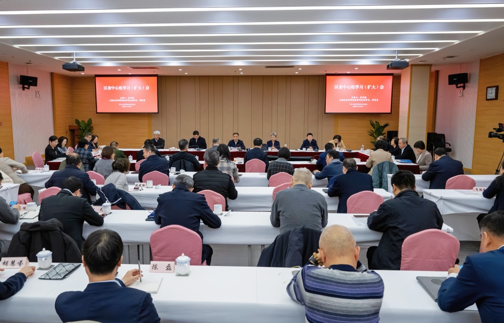 1月22日,区委中心组学习(扩大)会在区机关四楼多功能厅举行,听取上海社会科学院经济研究所所长、研究员沈开艳围绕“党的二十届四中全会精神与‘十五五’规划部署,锚定静安区经济社会高质量发展”主题所作的专题辅导报告。