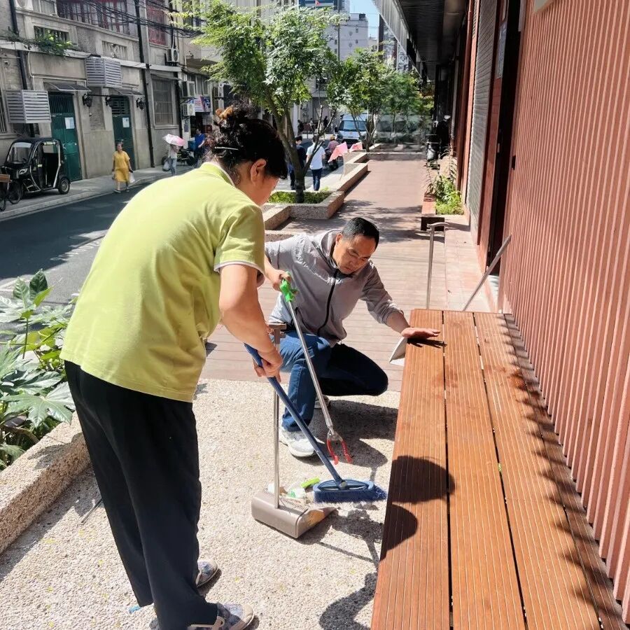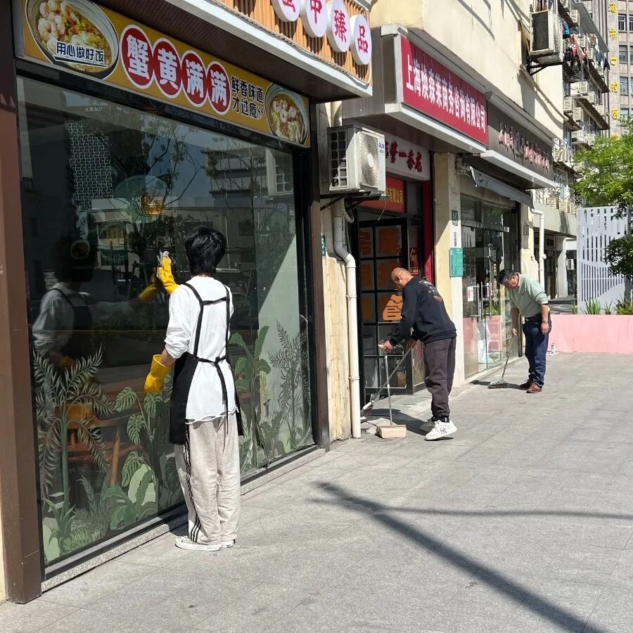 安图新村门前卫生自律组织于2024年6月成立,涵盖靖宇东路、延吉东路等29家沿街单位。杨浦区长白新村街道通过党建引领有效整合资源、促进商居融合,为老旧居住型社区的沿街治理提供了新实践。