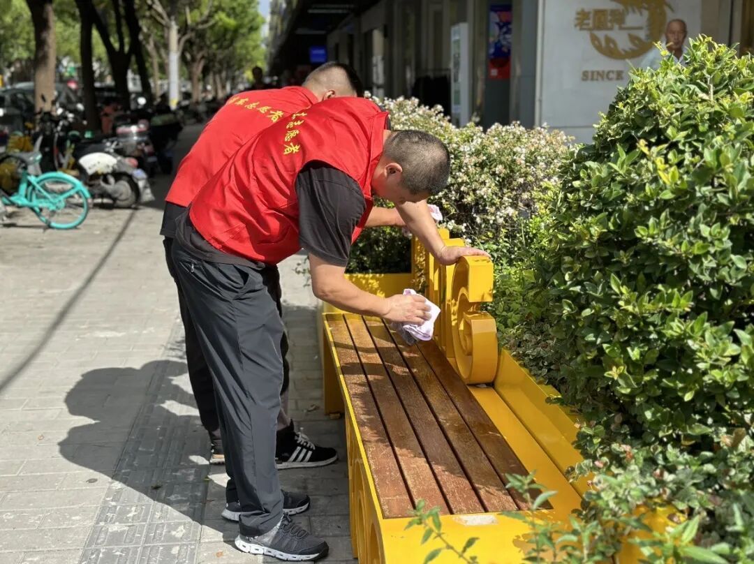 “青丝带环境护卫队”每月组织商户与志愿者清洁街区,强化“守好门前一方土”的责任意识;