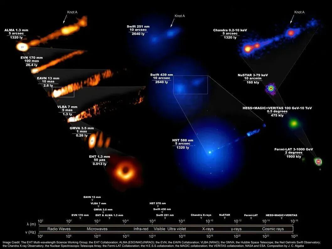 不过需要注意的是,这张“照片”并不是直接用相机拍出来的,而是来自不同望远镜的“观测结果图像”。