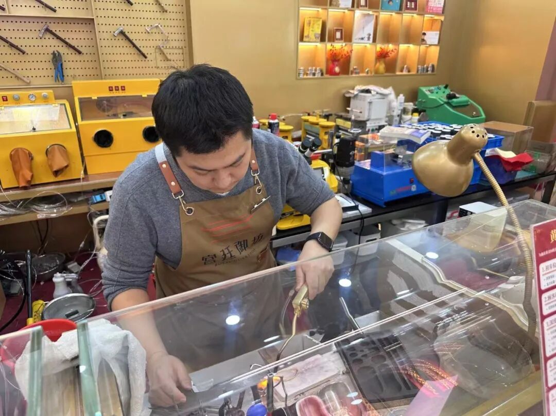 “‘包损耗’就是顾客拿来多少克黄金,做完必须归还一模一样的克重,损耗由我们承担。”宋嘉乐解释道,事前事后复称、复检纯度已成为标准流程,以此建立信任。