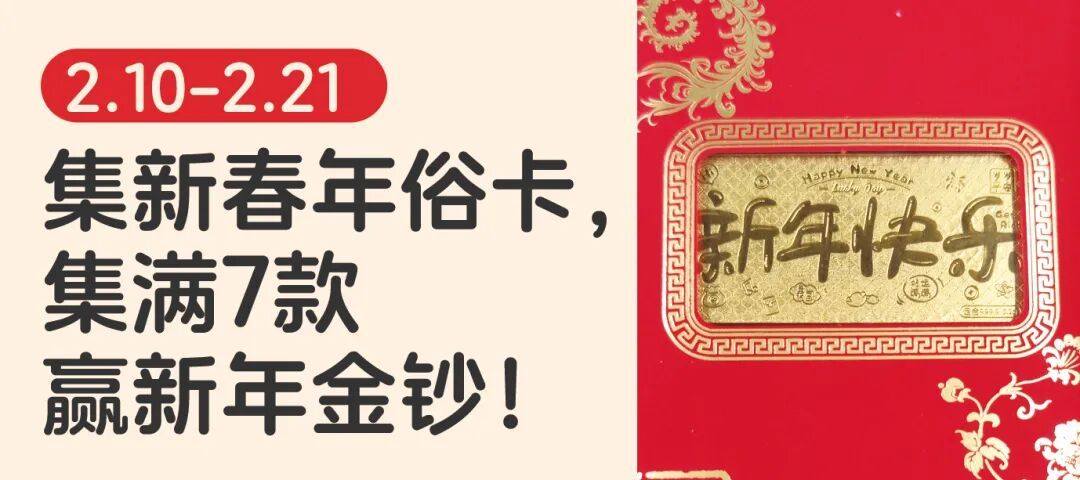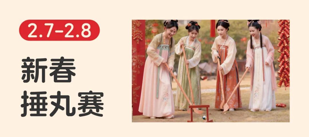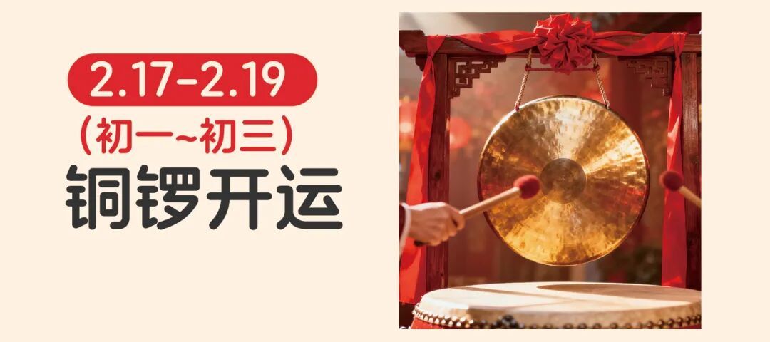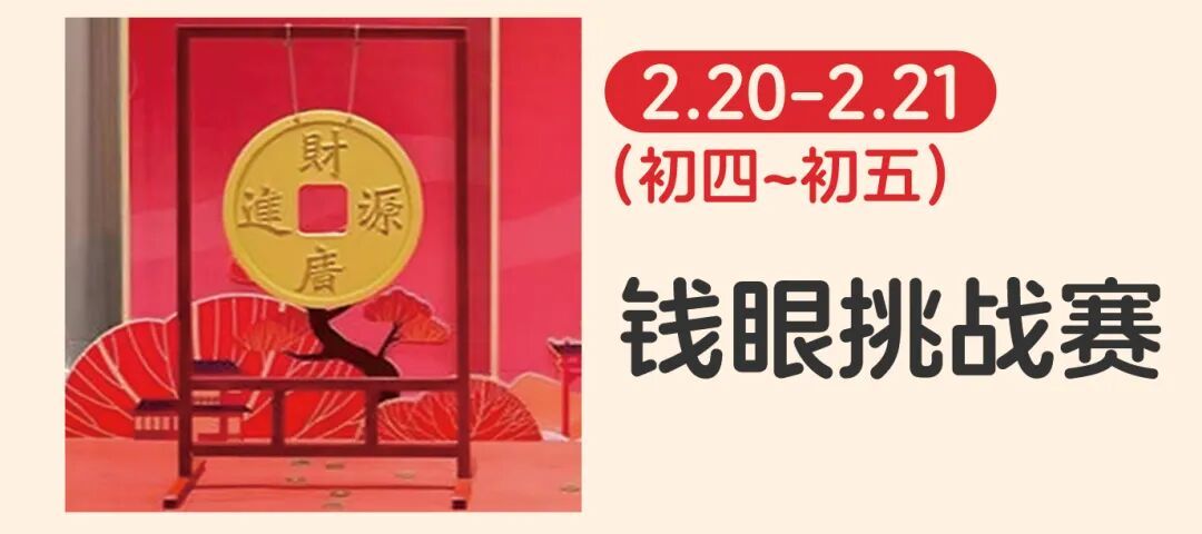 1.24—1.25陀螺争霸赛;1.31—2.1新春滚铁环;2.7—2.8新春捶丸赛;2.10—2.11送福送春联;2.10—2.21集新春年俗卡,赢新年金钞;2.17—2.19铜锣开运;2.20—2.21钱眼挑战赛……丰富的新春互动活动让市民在置办年货的同时,沉浸式感受传统年味。