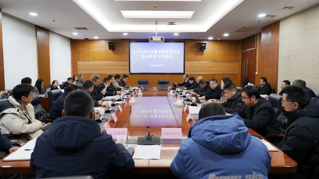 1月20日上午,金山区召开2026年1月环境质量提升攻坚工作例会,副区长、区生态文明建设领导小组办公室主任罗明陨出席会议并讲话,区生态文明建设领导小组办公室常务副主任、区生态环境局局长朱毅主持会议,区相关部门和各街镇(园区)分管负责人参加会议。
