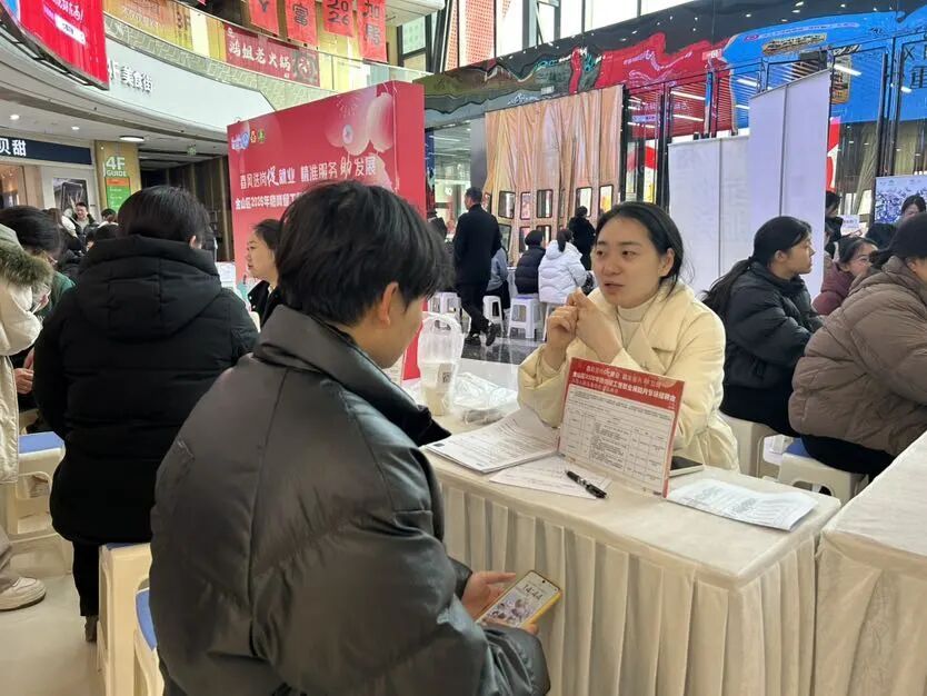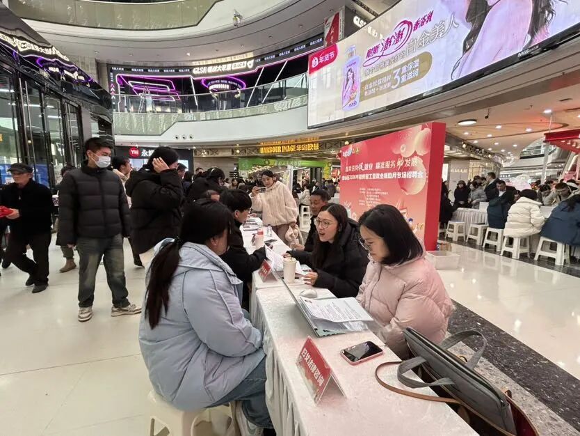 招聘会现场人头攒动,既有逛商场时被岗位信息吸引、驻足咨询的市民,也有目标明确、手持简历,在各个企业展位前逐一问询、穿梭沟通的求职者。