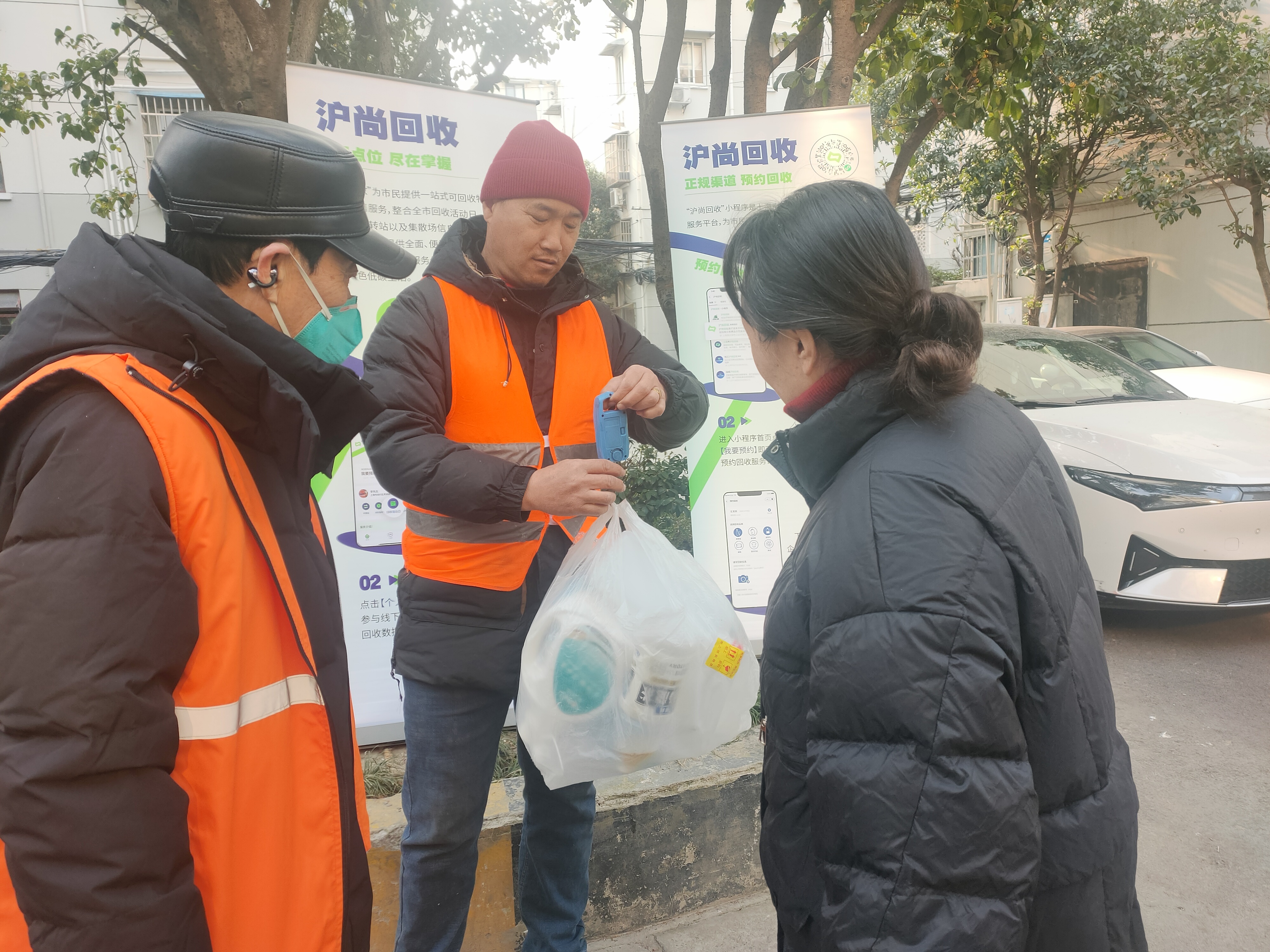 同时,服务点还设立政策咨询处,现场,工作人员向居民详细介绍“沪尚回收”服务流程,并指导使用线上预约功能,帮助居民熟练掌握“一键预约、上门回收”的智慧服务模式,进一步提升回收便利性和居民满意度。