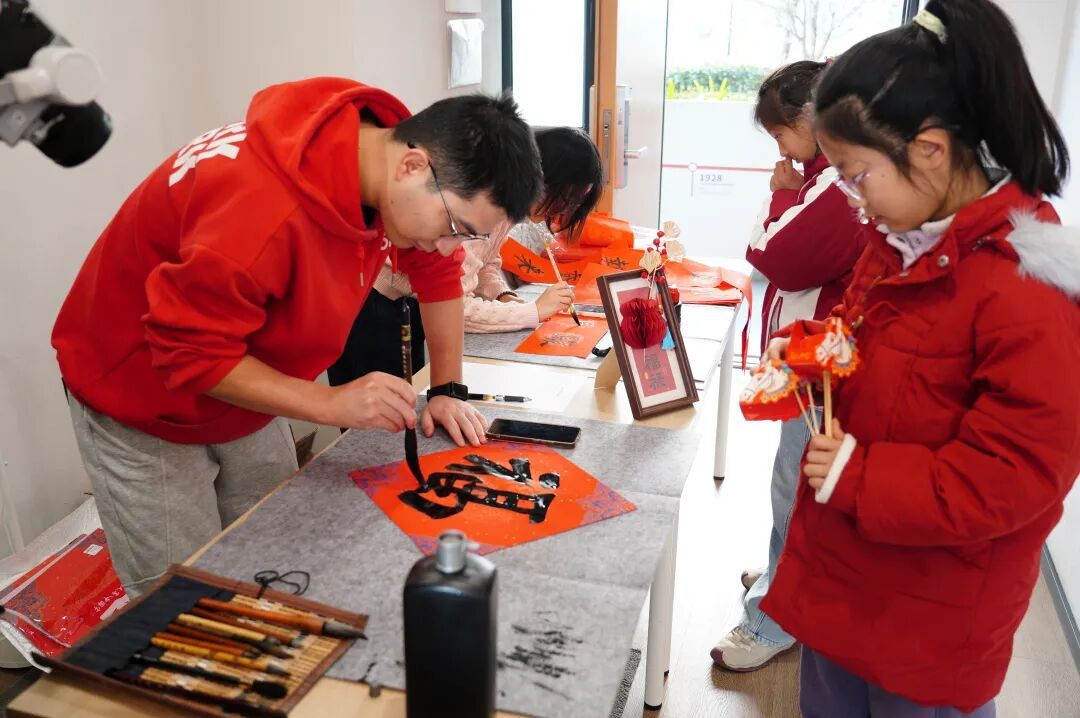 据了解,每周六晚上,李祖亿的书法社团活动都会准时开展,很多学员住户长期跟随他学习。当天,他便和两位书法社团成员一起帮大家写福字和对联。几个小朋友听说后,好奇地站在旁边看着,而家长听说书法社团的课程后,也产生了给孩子报名的兴趣。