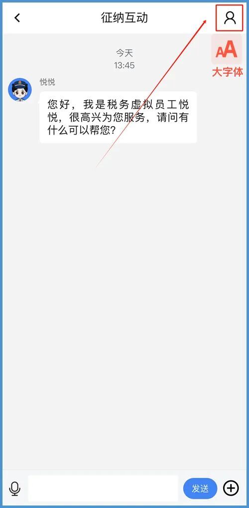 登录电子税务局App后,您可点击界面下方征纳互动【悦悦】头像,进入征纳互动服务界面。