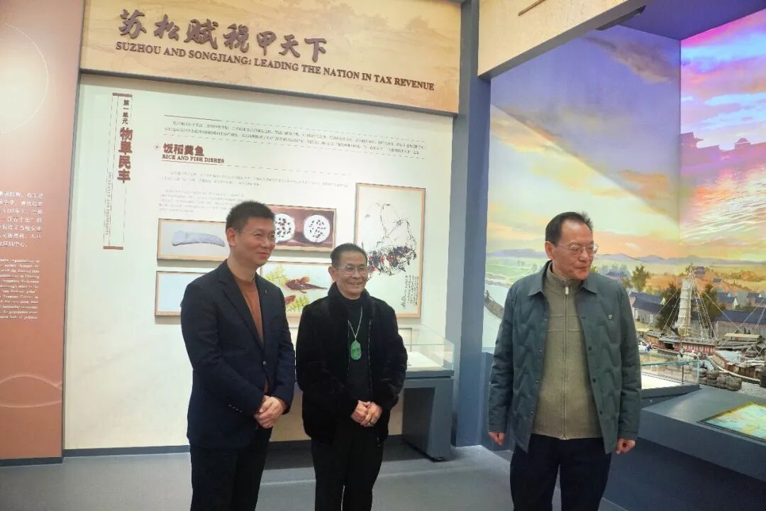 捐赠仪式结束后,陆子明父子在档案馆工作人员的陪同下,参观了一楼“云间翠羽”展馆。展馆内详实记录了松江历史的演变脉络与发展历程,让陆子明心生感慨。“自己生活在泗泾,却对松江的历史了解不够深入,这次参观让我重温了家乡的过往,也为自己补上了珍贵的一课。”陆子明在参观后表示。