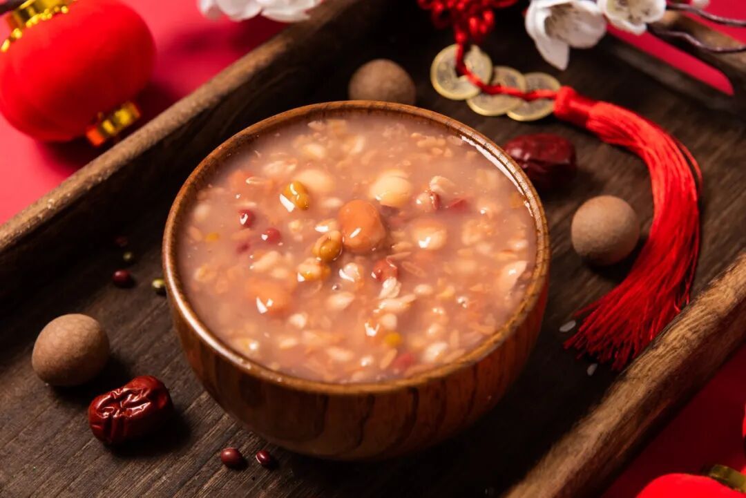 “腊八到,粥飘香”,腊八这天,喝腊八粥是我国南北共有习俗,人们将红枣、花生、桂圆、莲子、核桃、粳米等和各种豆类合水熬制成粥。