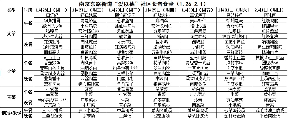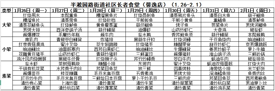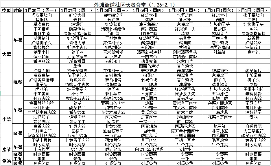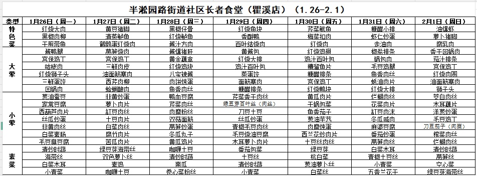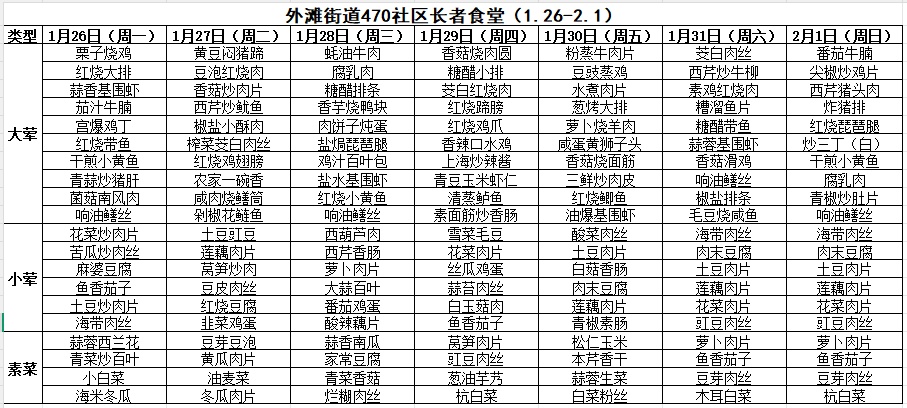 一周菜单来啦