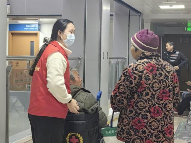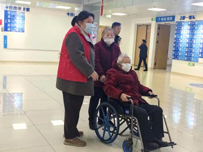崇明区老龄化程度高,高龄老人与行动不便的患者在独自就医时常会遇到一些尴尬与不便。去年12月,团区委联合区卫生健康委、上海亚通股份有限公司、上海健康医学院附属崇明医院推出“朝夕相伴 医路无忧”全流程陪诊志愿服务,让特殊群体独自就医时有了“临时家人”。目前,这项志愿服务活动已进入常态化。 近日,一位阿婆推着老伴在医院问诊,挂号排队期间,志愿者何老师看到两位老人腿脚不便,主动上前询问,在了解情况后,全程陪同他们完成挂号、拍CT、看诊等就医流程。阿婆感慨道:“子女不在身边,我既要推着老伴,又要跑上跑下挂号付费,现在有你们真的太好了,真的很温暖。”