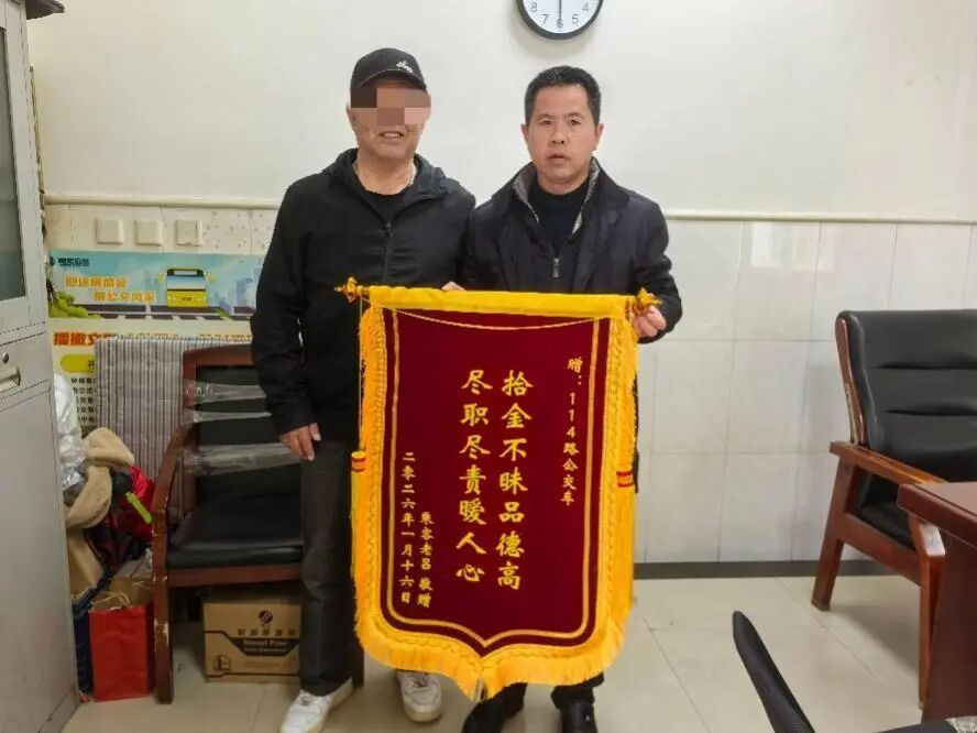 1月20日,一面写着“拾金不昧品德高、尽职尽责暖人心”的锦旗,被送到嘉定公交114路的和静路站点。这面锦旗的背后,是一位公交司机与一位老人之间的暖心相遇。
