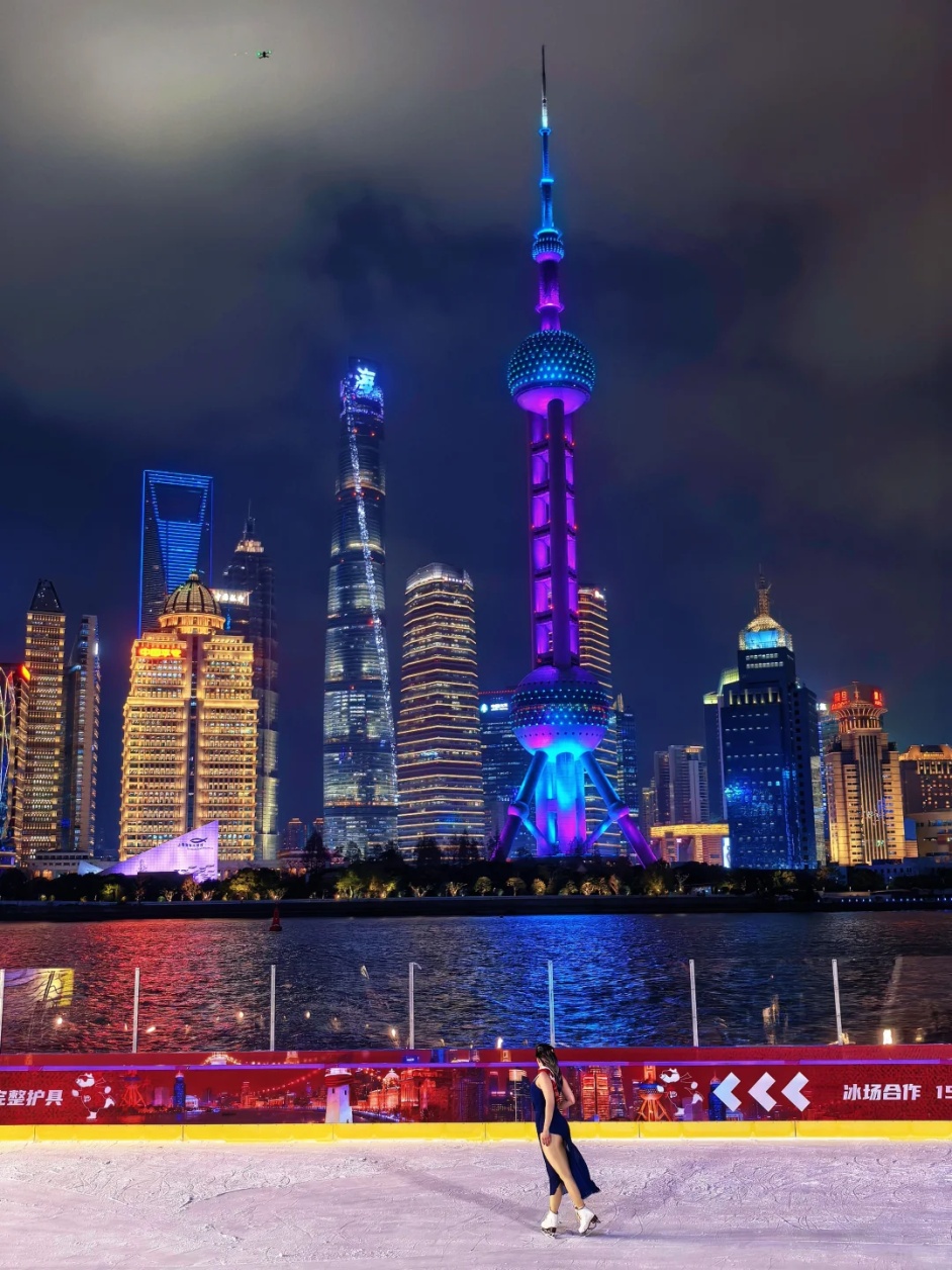 在沪上首个450㎡浦江冰场,脚下是晶莹冰面,眼前是百年浦江风光,这样的梦幻体验只在北外滩!