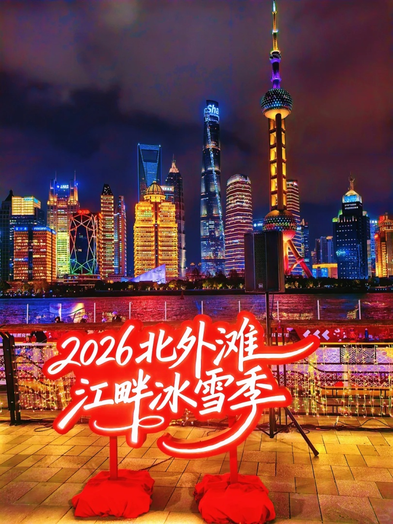 即日起至2月28日,2026北外滩江畔冰雪季每周末在特定区域打造唯美“飘雪时刻”,营造如梦似幻的冬夜氛围,随手拍出新年氛围感大片。