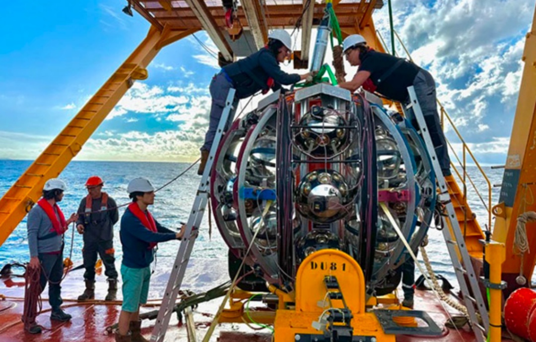 工程师准备将1个探测器添加到海底KM3NeT网络中。图片来源:Paschal Coyle CNRS