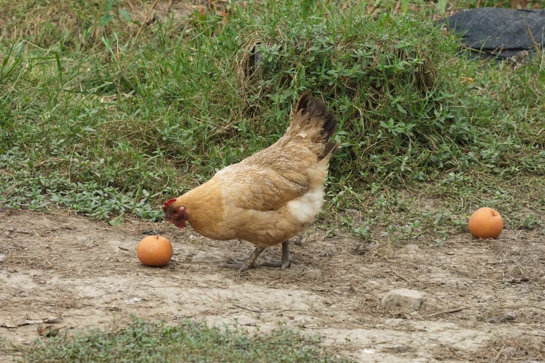 啄食虫蚁、青草与落果,