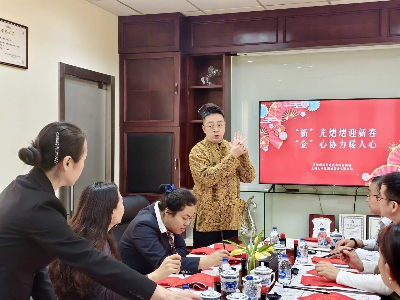 新年伊始,万象焕新。近日,共和新路街道善养综合网格联合上海大宁欧洲城置业有限公司开展了一场以“‘新’光熠熠迎新春,‘企’心协力暖人心”为主题的迎新活动。以笔墨传递祝福,以联动强化融合,生动展现了网格多元主体共建共融的景象,为马年新春增添了浓郁的红色年味。