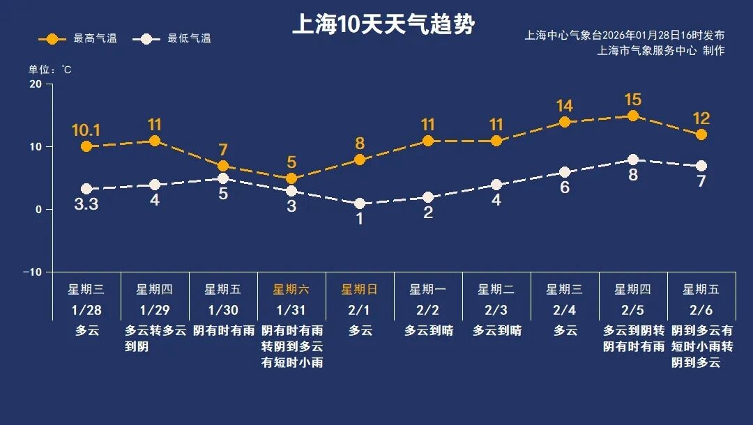 周日早间气温来到近期低点,白天转为多云天气,气温逐日回升。下周初天气晴好,周中最高气温有望升至14~15℃。