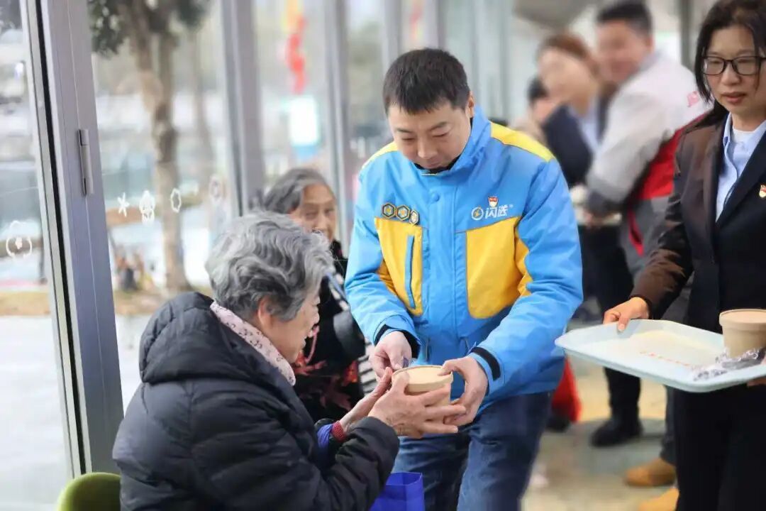 “闪光骑士”与街区书记一同为居民送上腊八粥