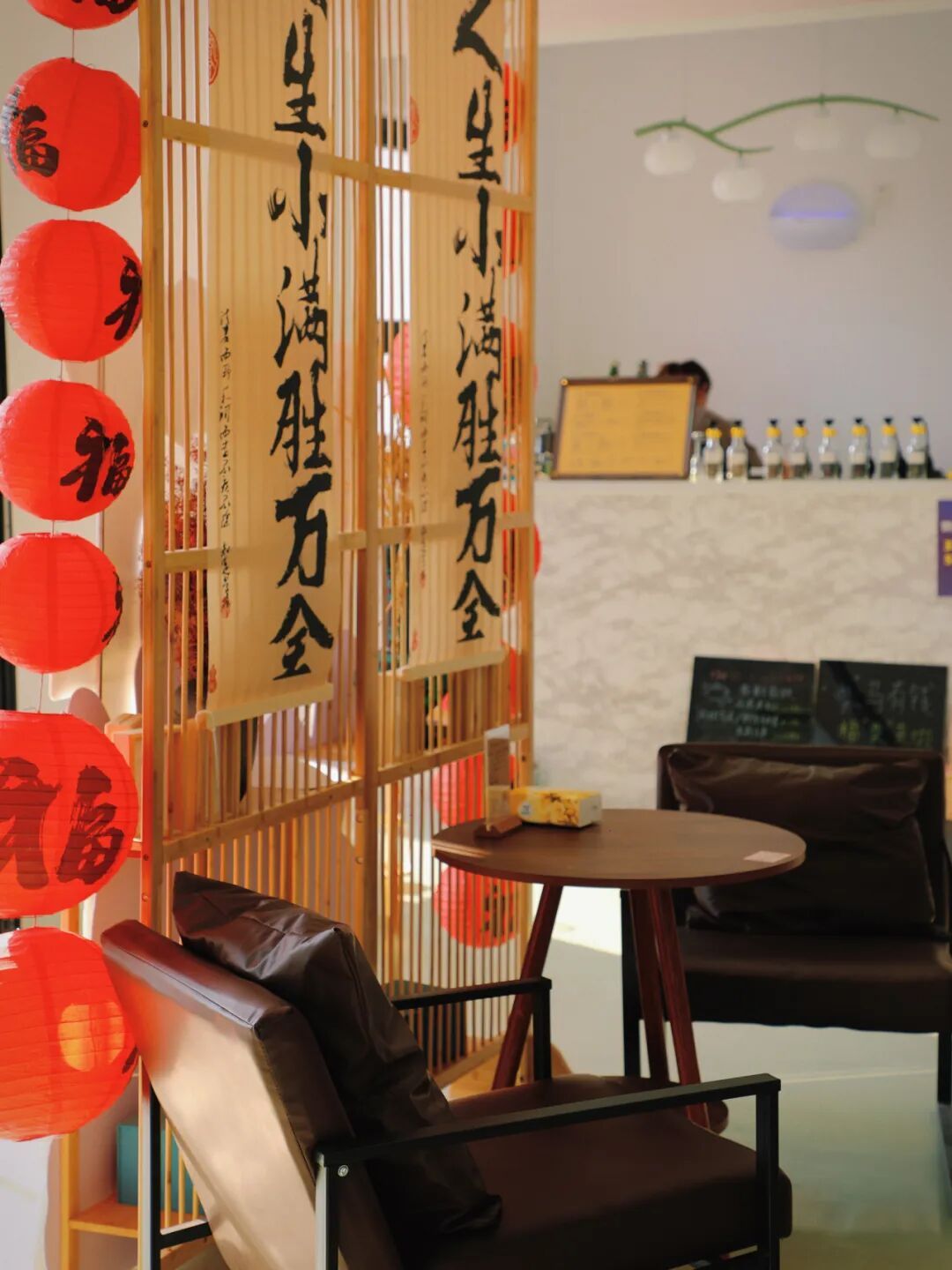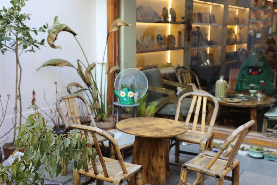 院落不大,却处处是店主的巧思。竹椅、绿植、质朴的茶具,勾勒出闲坐半日的向往。恰逢新年,还能邂逅小院精心布置的新年氛围。福字、灯笼、窗花,为素雅的院子点缀上温暖的节庆色彩,让这里的安静,多了一份人间烟火的暖意。
