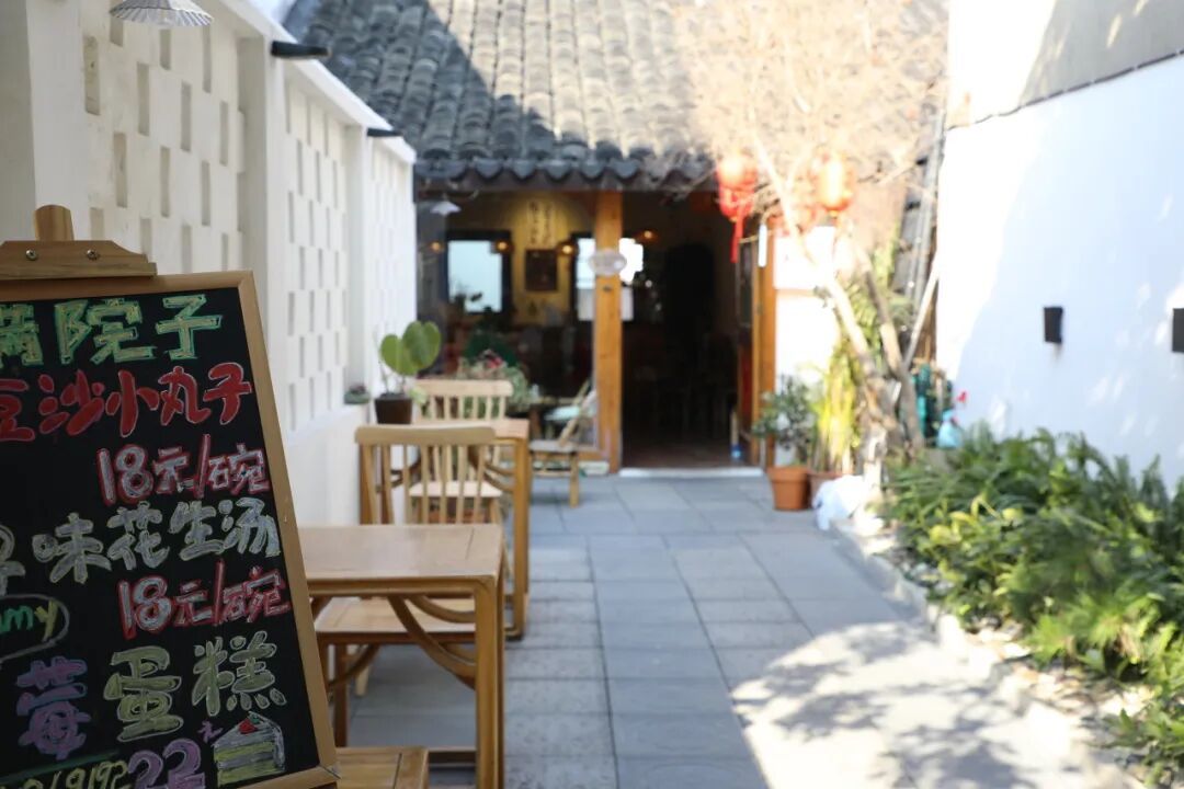 白墙黛瓦的小院,与老街的江南古韵相融,推门而入,便与一街之隔的人来人往隔出了两个世界,坐在院中,能听见墙外老街的烟火人声,却又能独享院内的静谧安然,这份闹中取静的美好,独属于小满院子。
