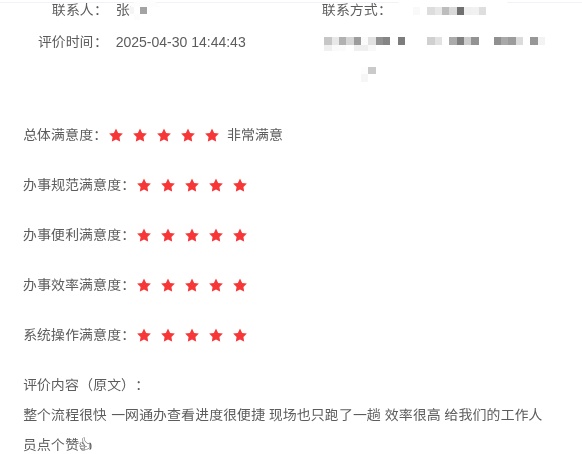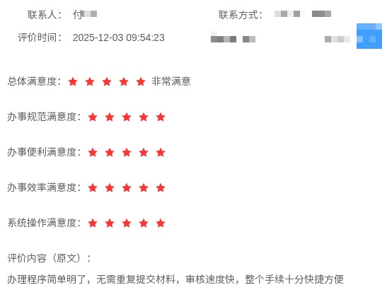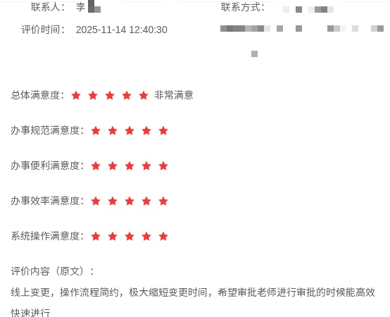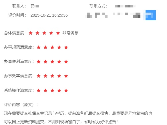 市民留言提到在海湾旅游区社区事务受理中心办理业务“特别好,只跑一次,搞定”。又如市民在申请公租房时表示“办理程序简单明了,无需重复提交材料,审核速度快,整个手续十分快捷方便”。再如企业办事员在办理特种设备许可证时感慨“现在需要提交社保交金记录与学历,提前准备好后提交很快,最重要是异地复审的也可以网上更新资料提交,不用到现场窗口了,省时省力好评点赞!”